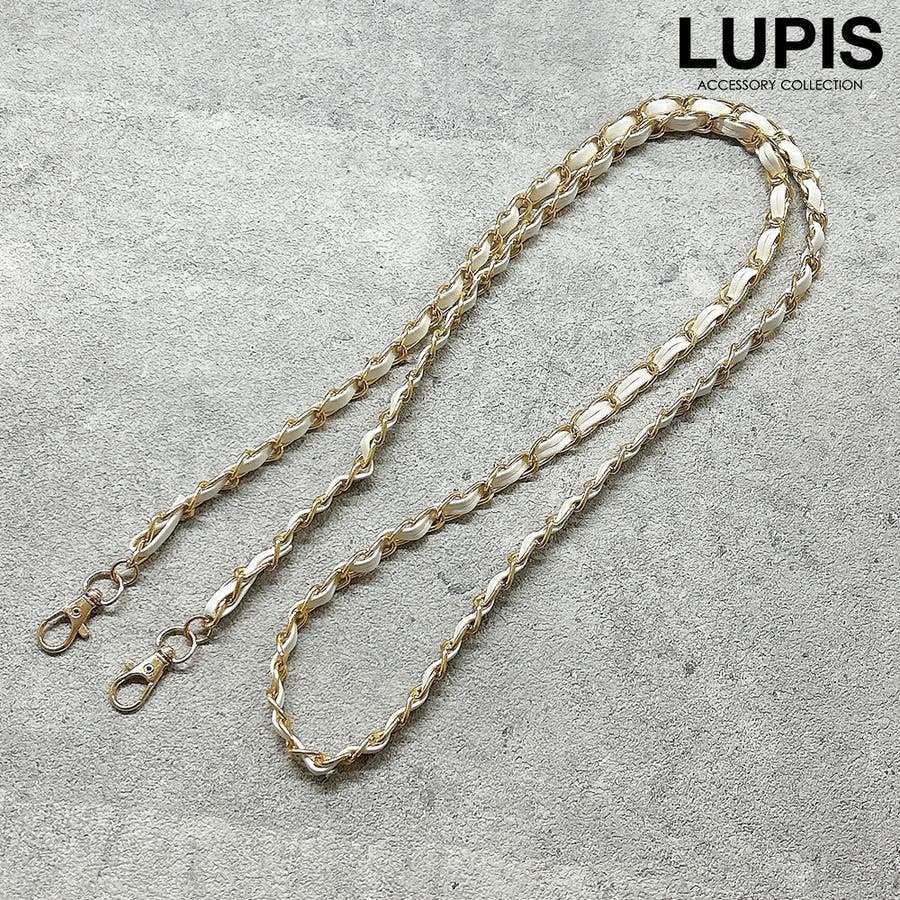 メタルチェーンにフェイクレザーを編み込んだスマホショルダー。