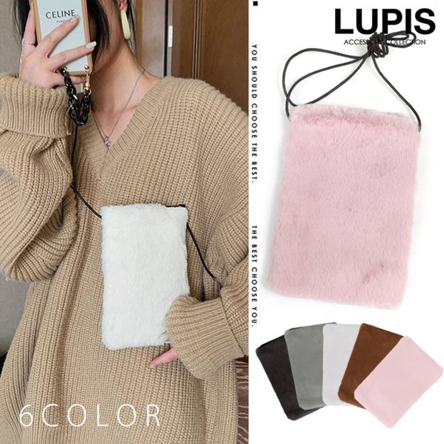 プチプラ サコッシュ スマホバッグ ショルダーバッグ ファーバッグ バッグ フェイクファー ミニバッグ キッズ ホワイト ブラック グレー モカ ピンク ミックス 10代 20代 30代 40代 レディース 女性 アクセサリー アクセ 安い AW 秋 冬 秋冬 ルピス LUPIS