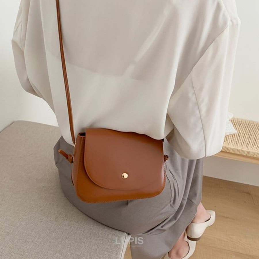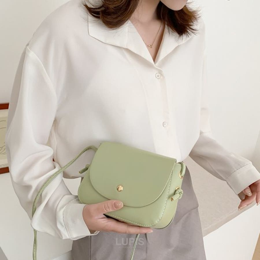 しっとりした触り心地の気持ちいいレザー調ショルダーバッグ。