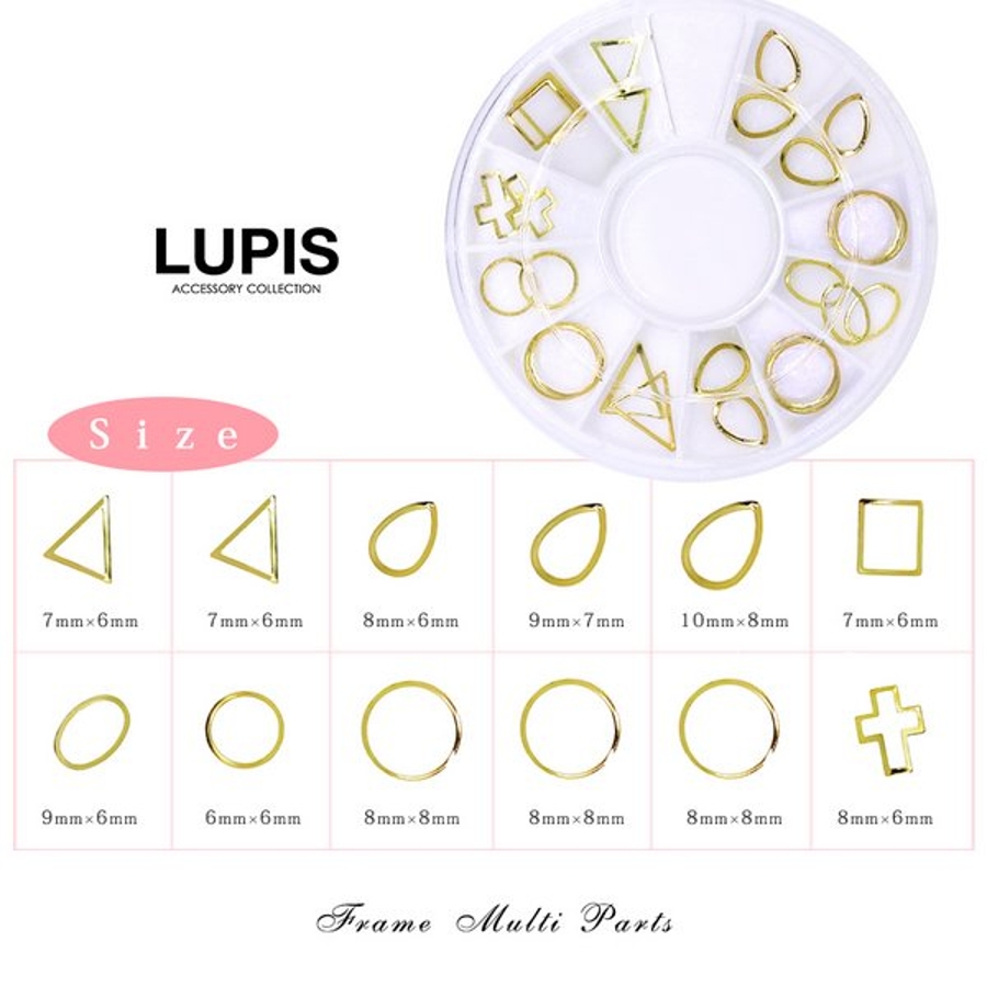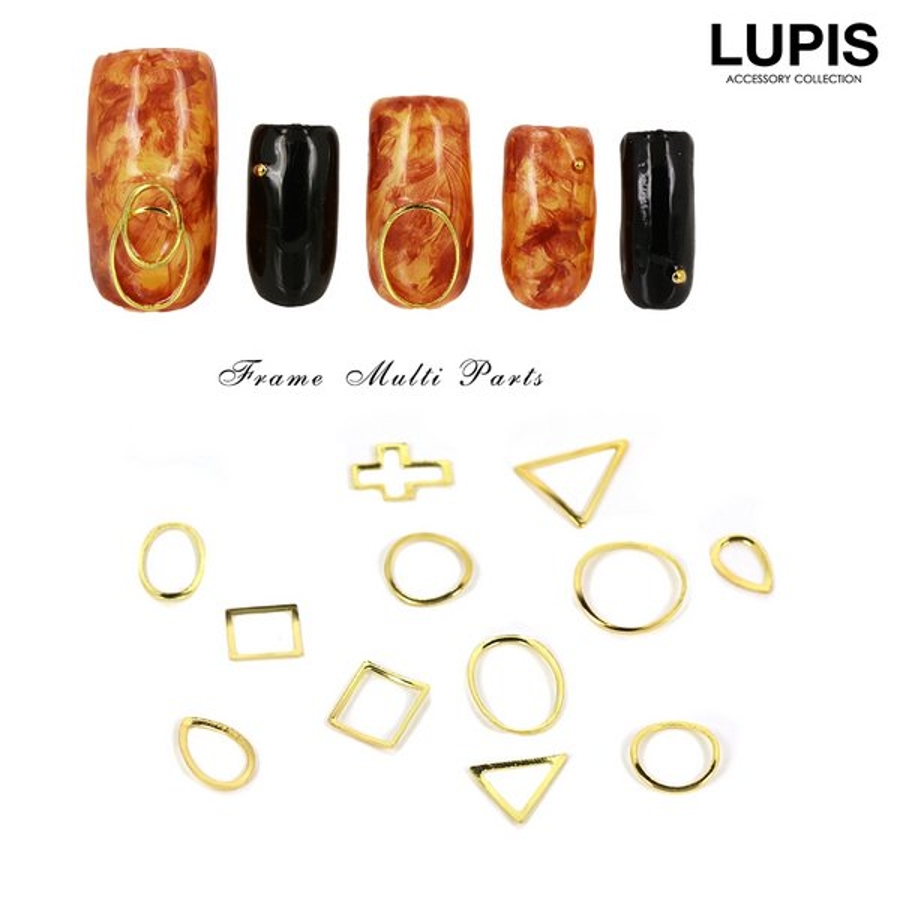 エレガントなゴールドフレームネイルパーツ。