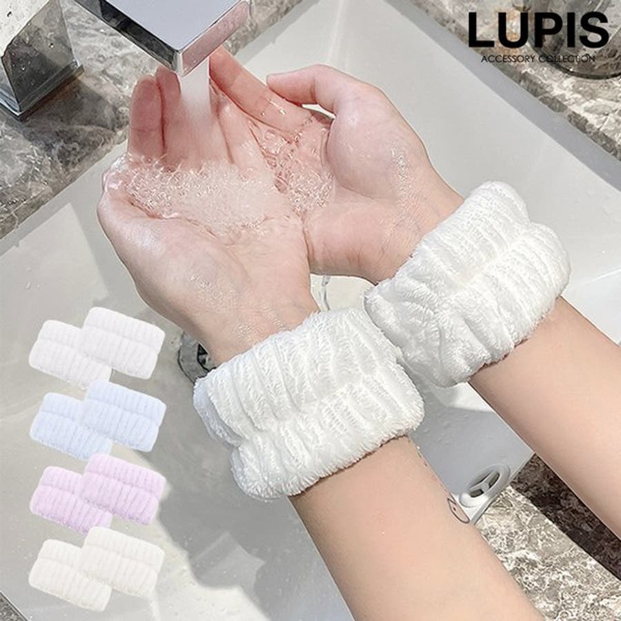 プチプラ リストバンド 吸水リストバンド マイクロファイバー 袖濡れ防止 2個入り アームバンド ふわふわ 洗顔 ホワイト アイボリー ブルー パープル 10代 20代 30代 40代 レディース 女性 安い 春 夏 春夏 秋 冬 秋冬 ルピス LUPIS