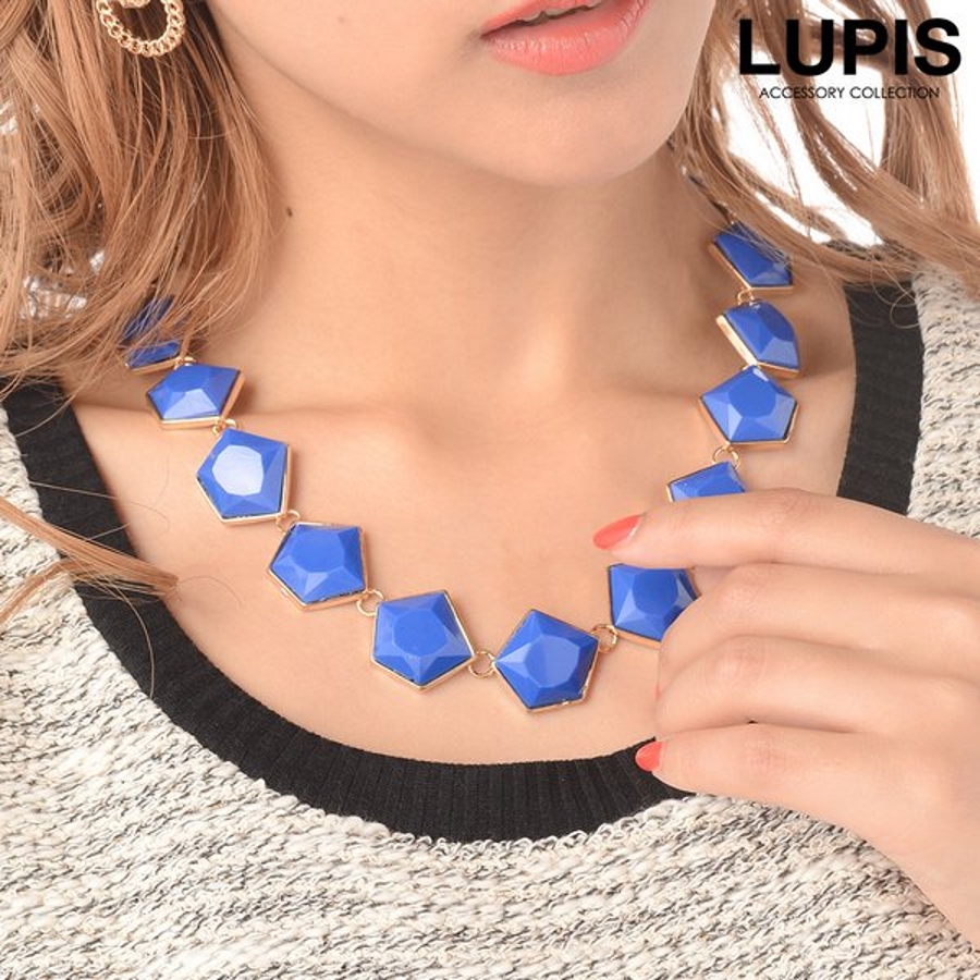 プチプラ ネックレス レディース ペンタゴン ストーン ビジュー 大ぶり 大きめ ブラック ブルー 安い 春 夏 春夏 秋 冬 秋冬 ルピス LUPIS