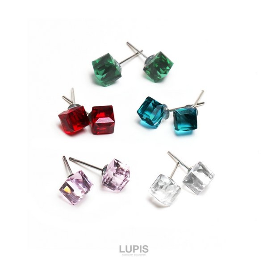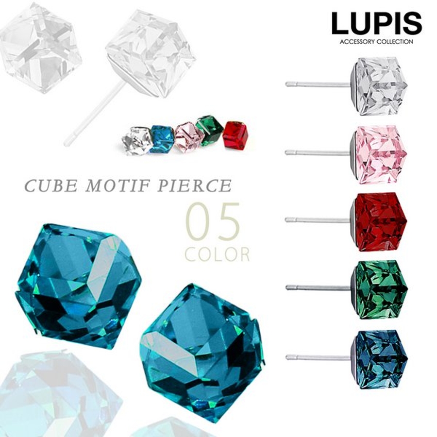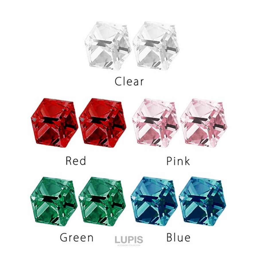 プチプラ ピアス キューブ シンプル ストーン スクエア クリア ピンク レッド グリーン ブルー 安い 春 夏 春夏 秋 冬 秋冬 ルピス LUPIS