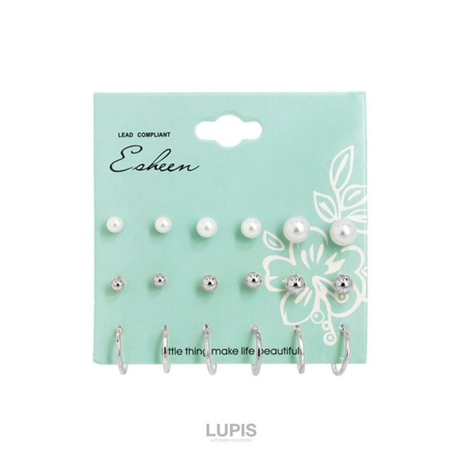 大きさの異なるパール、ボールピアスとフープピアスが18点セットとなったお得なアイテム。