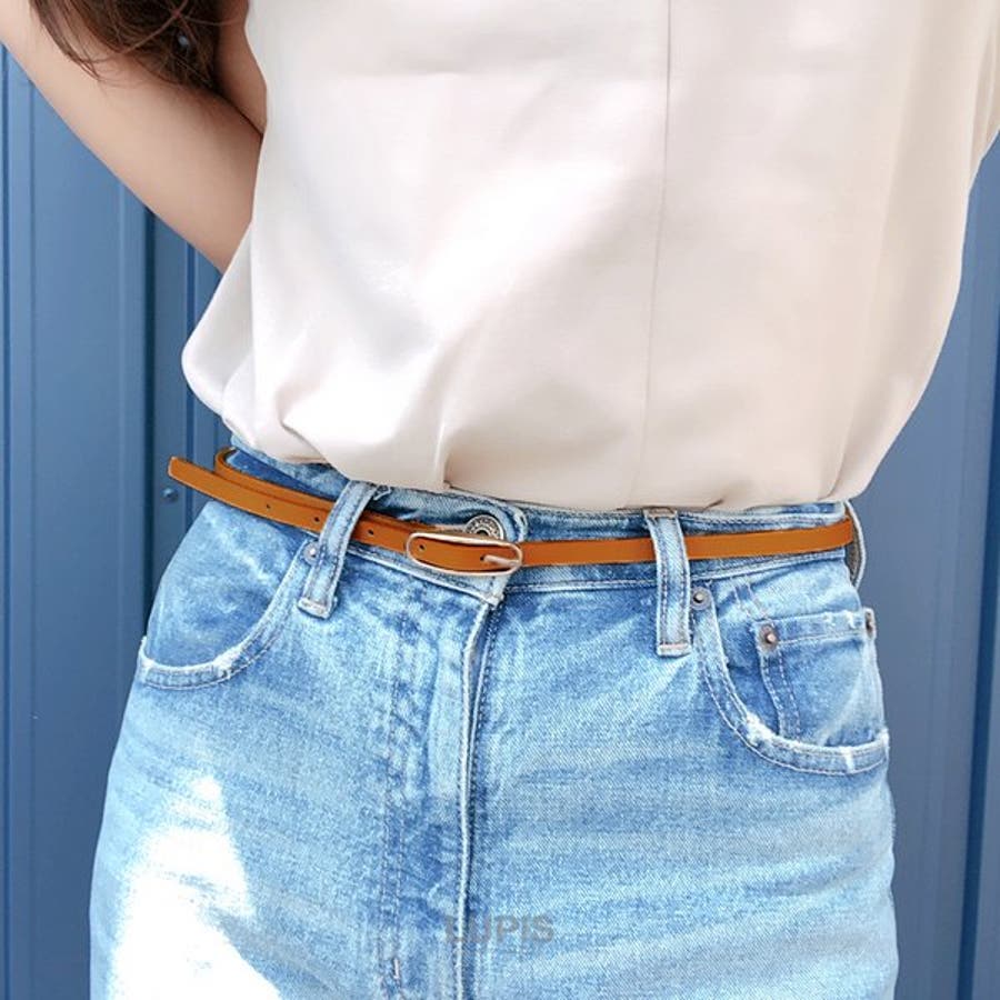 リッチな印象の型押しレザー調細ベルト。