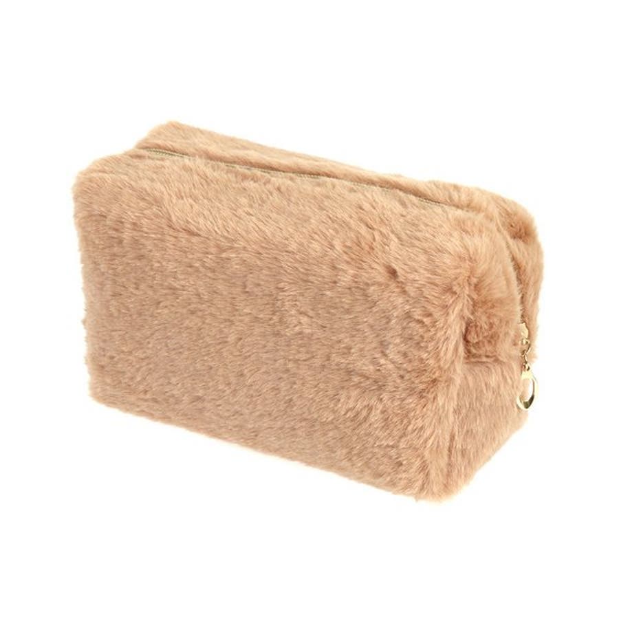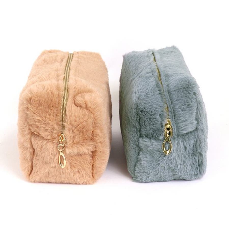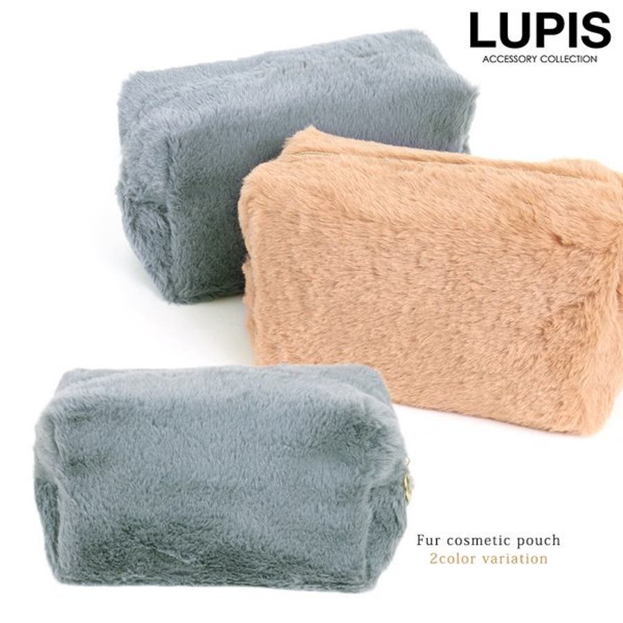 プチプラ ポーチ 化粧ポーチ コスメポーチ ファー フェイクファー ふわふわ スクエア ブラウン グレー 大容量 10代 20代 30代 40代 レディース 女性 アクセサリー アクセ 安い AW 秋 冬 秋冬 ルピス LUPIS