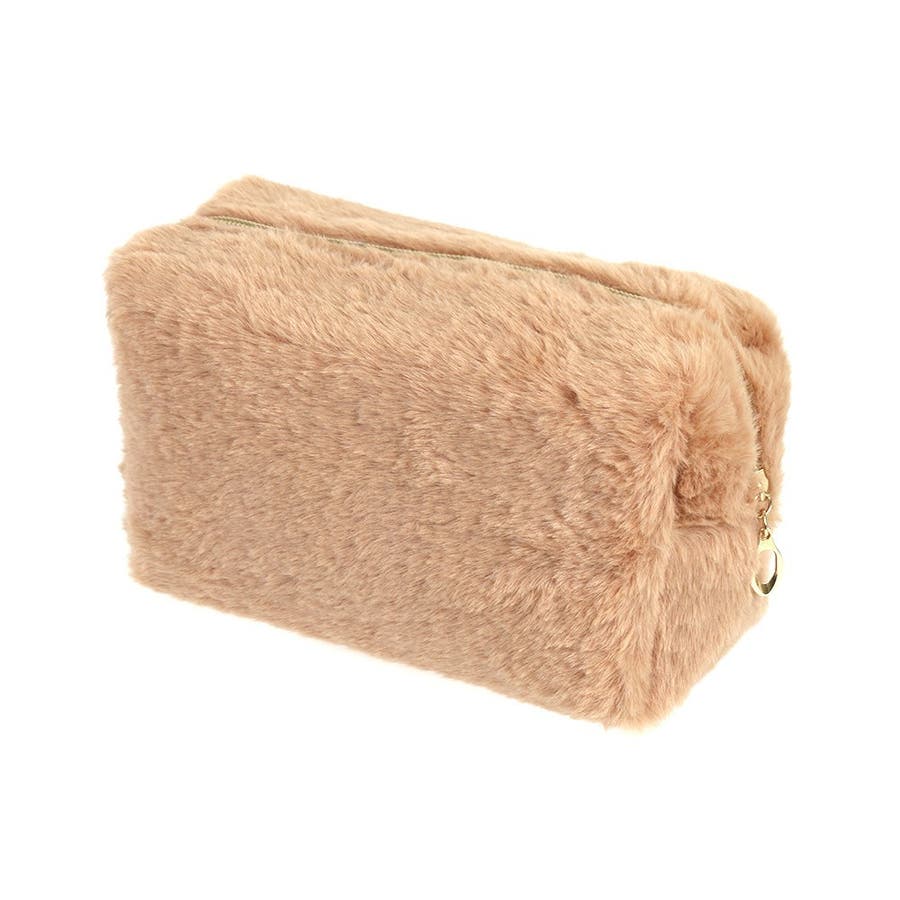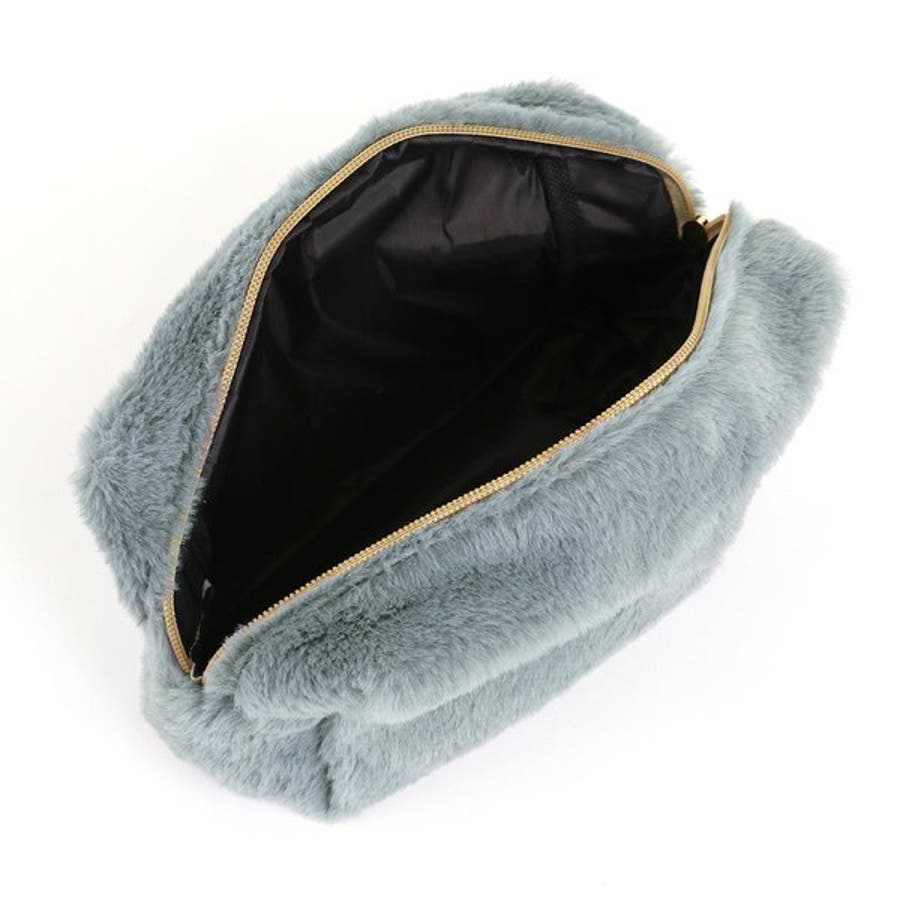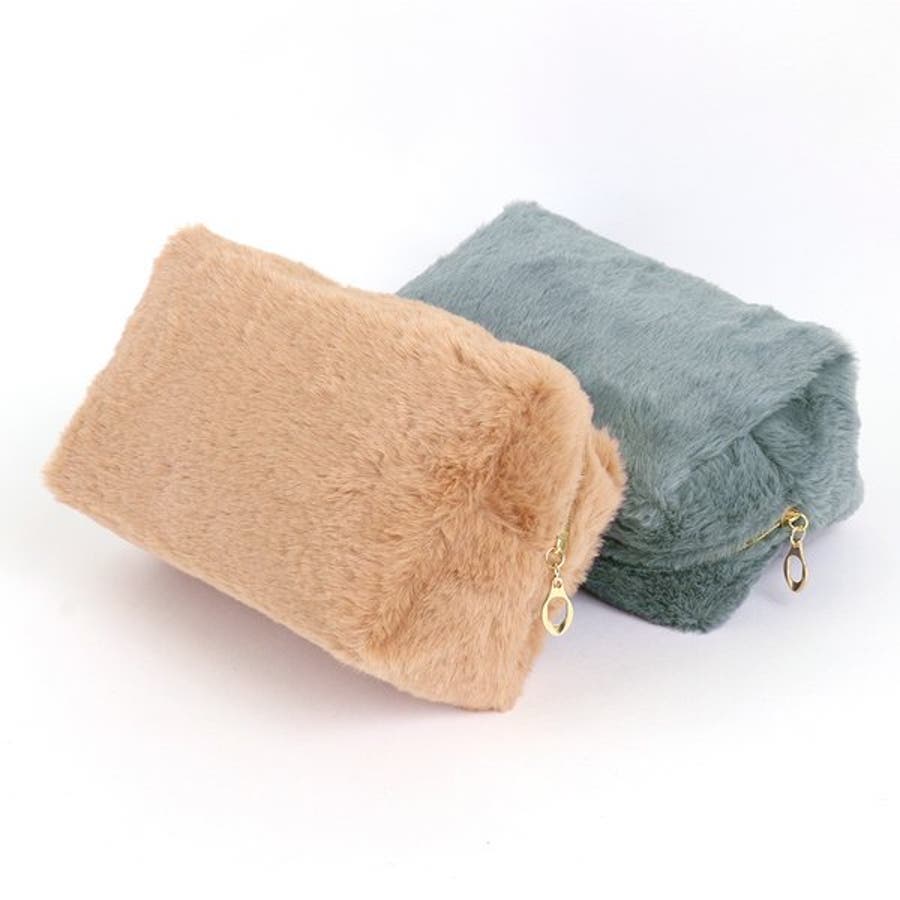 ついつい触ってしまいたくなるような、肌触りの良いファーが特徴の大きめポーチ。