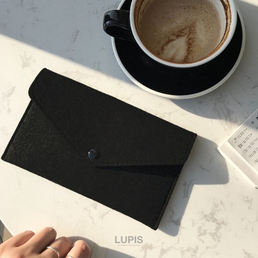 フェルトのような温かみのある素材を使用したマルチポーチ。