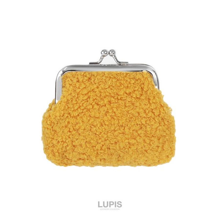 くるくる毛質がかわいらしいがま口ポーチ。