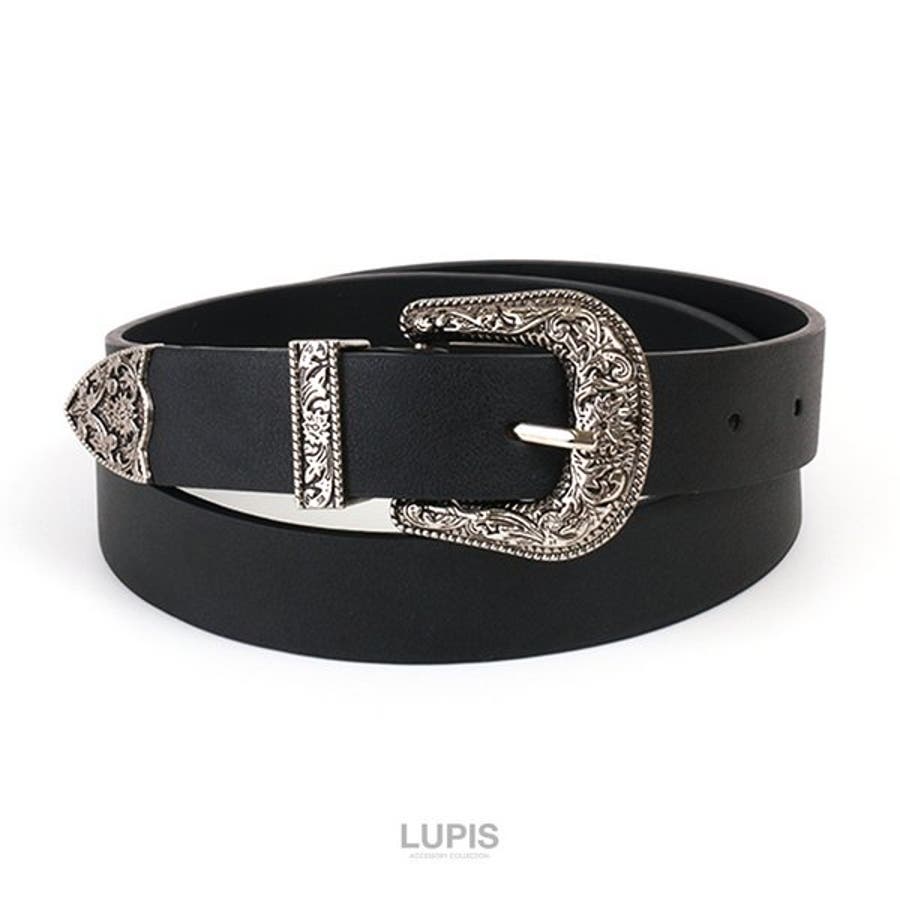 金具に繊細な彫刻デザインを施したウエスタン調ベルト。