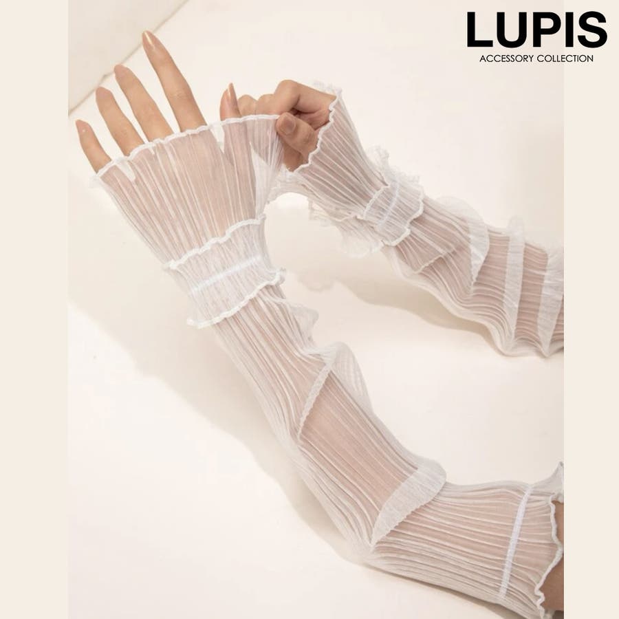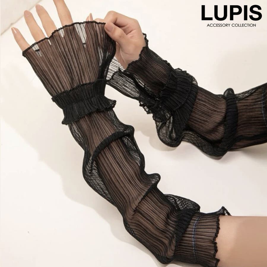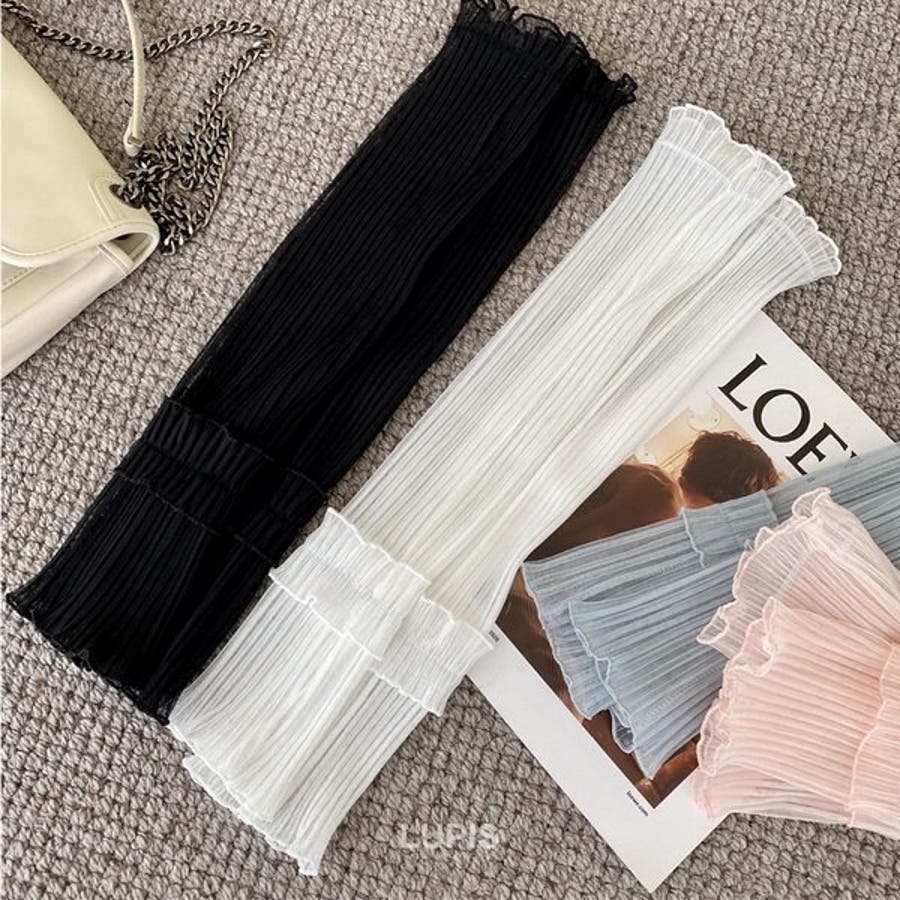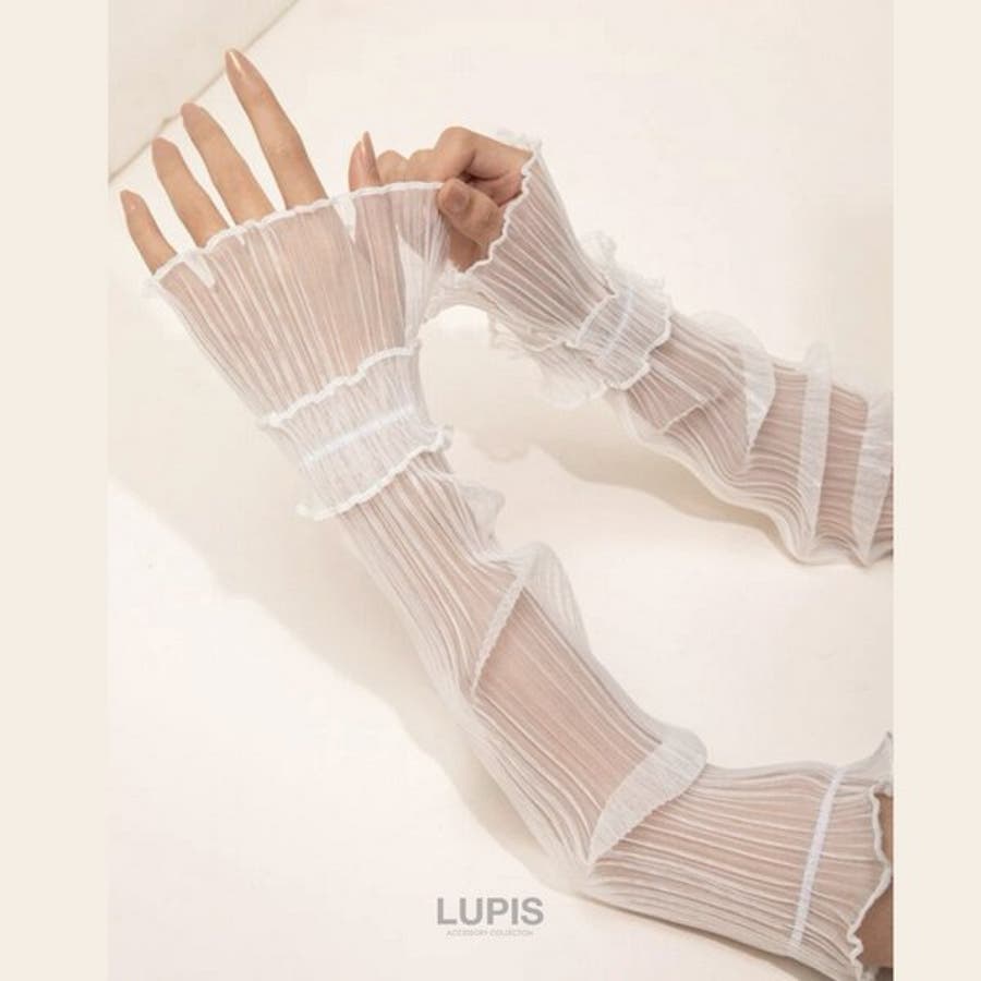 プチプラ アームウォーマー アームカバー シースルー シアー プリーツ フリル かわいい おしゃれ ロング 紫外線対策 日除け 冷房対策 ブラック ホワイト 10代 20代 30代 40代 レディース 女性 アクセサリー アクセ 安い 春 夏 春夏 秋 冬 秋冬 ルピス LUPIS