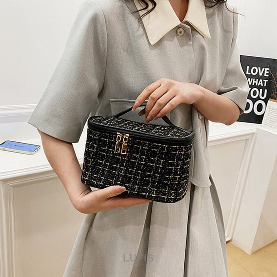 プチプラ コスメポーチ メイクポーチ バニティポーチ 化粧ポーチ ツイード 上品 おしゃれ 高見え かわいい 大容量 たっぷり収納 ホワイト ブラック 10代 20代 30代 40代 レディース 女性 安い 春 夏 春夏 秋 冬 秋冬 ルピス LUPIS
