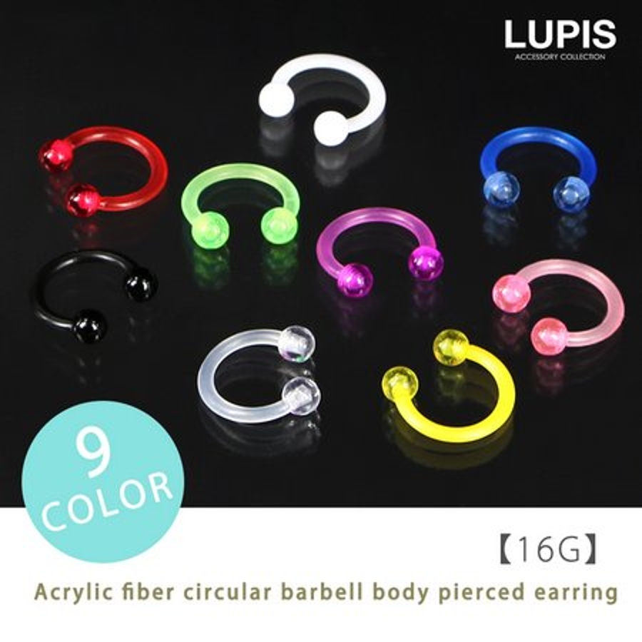 プチプラ 金属アレルギー対応 ボディピアス 16G サーキュラーバーベル アクリル シンプル ホワイト レッド ブラック グリーン ブルー パープル イエロー クリア ピンク 安い 春 夏 春夏 秋 冬 秋冬 ルピス LUPIS