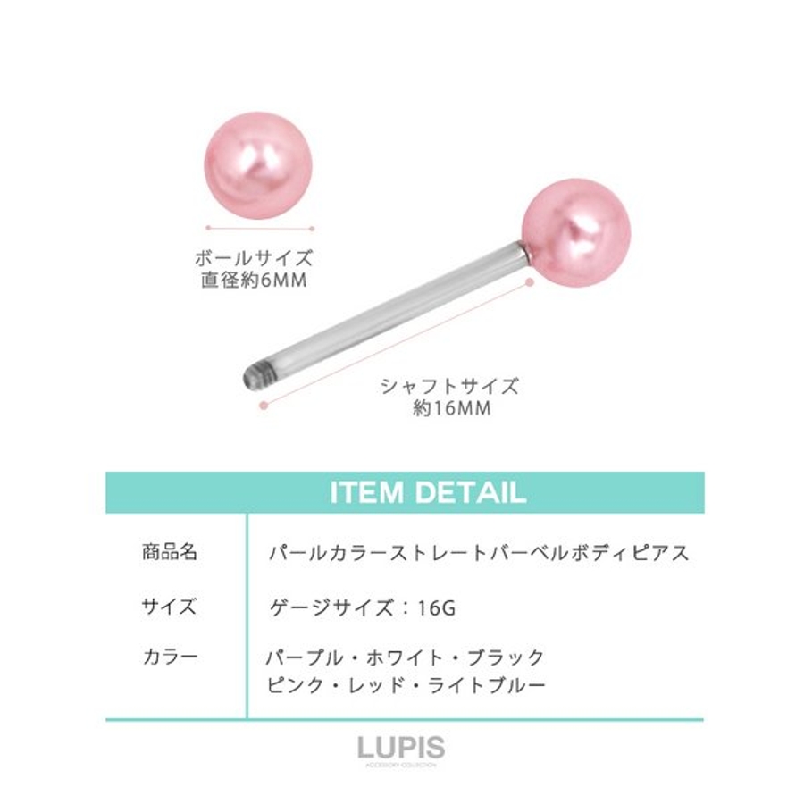 プチプラ サージカルステンレス 316L ボディピアス 14G パールボール ストレートバーベル 軟骨ピアス シルバー パープル ホワイト レッド ピンク ブラック ライトブルー 安い 春 夏 春夏 秋 冬 秋冬 ルピス LUPIS