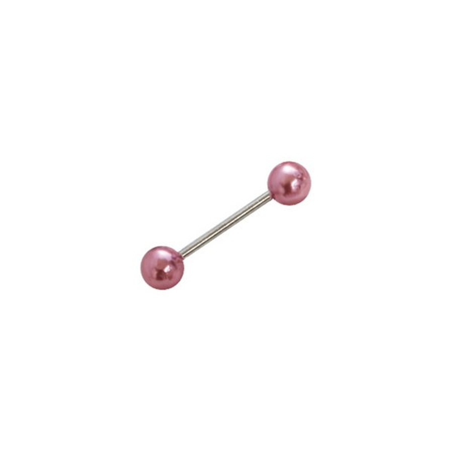 上品な色使いのパールカラーストレートバーベルボディピアス。