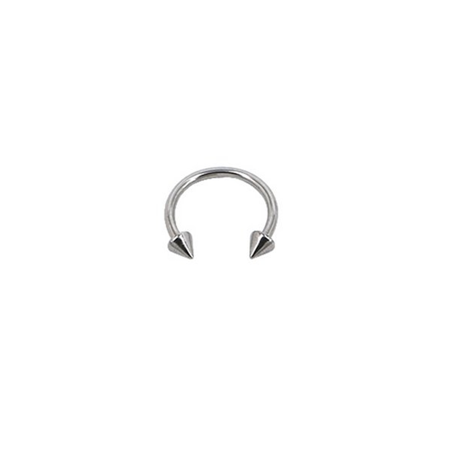 トップに角すいのコーンパーツをセットしたサーキュラーバーベルボディピアス。