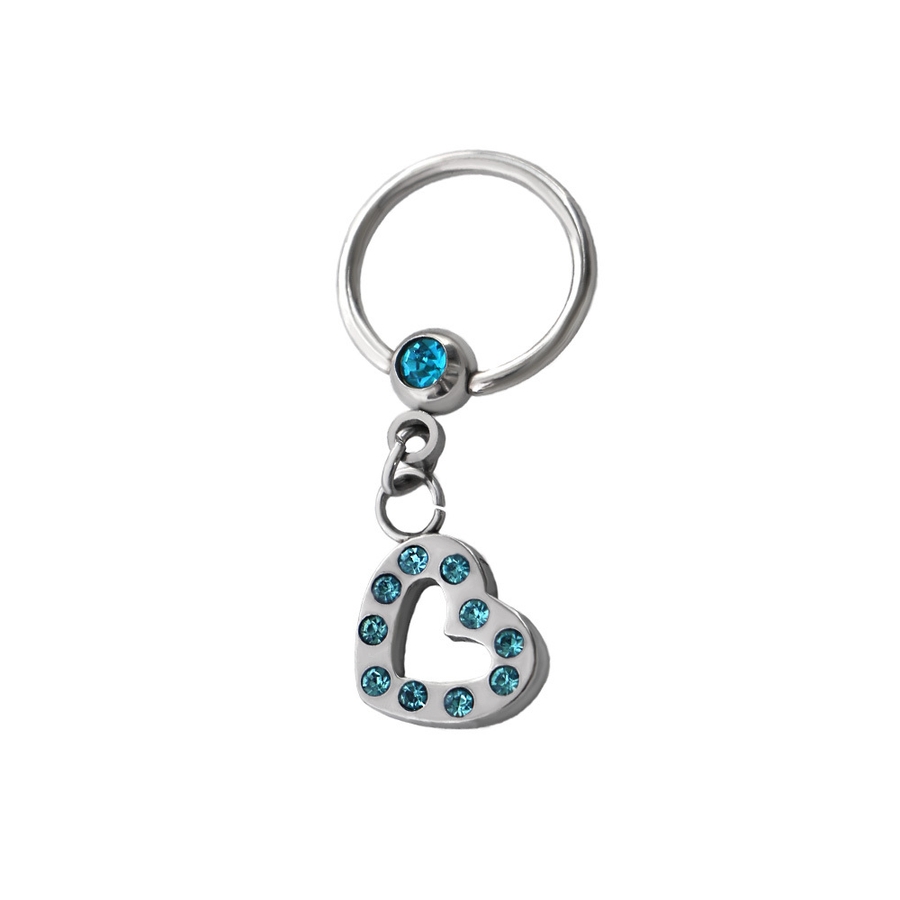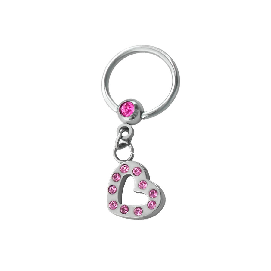 キャプティブビーズリングにハートチャームを合わせたボディピアス。