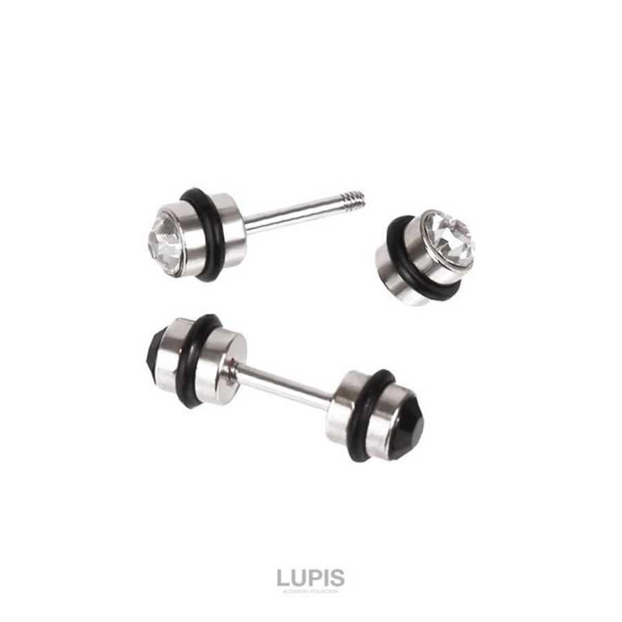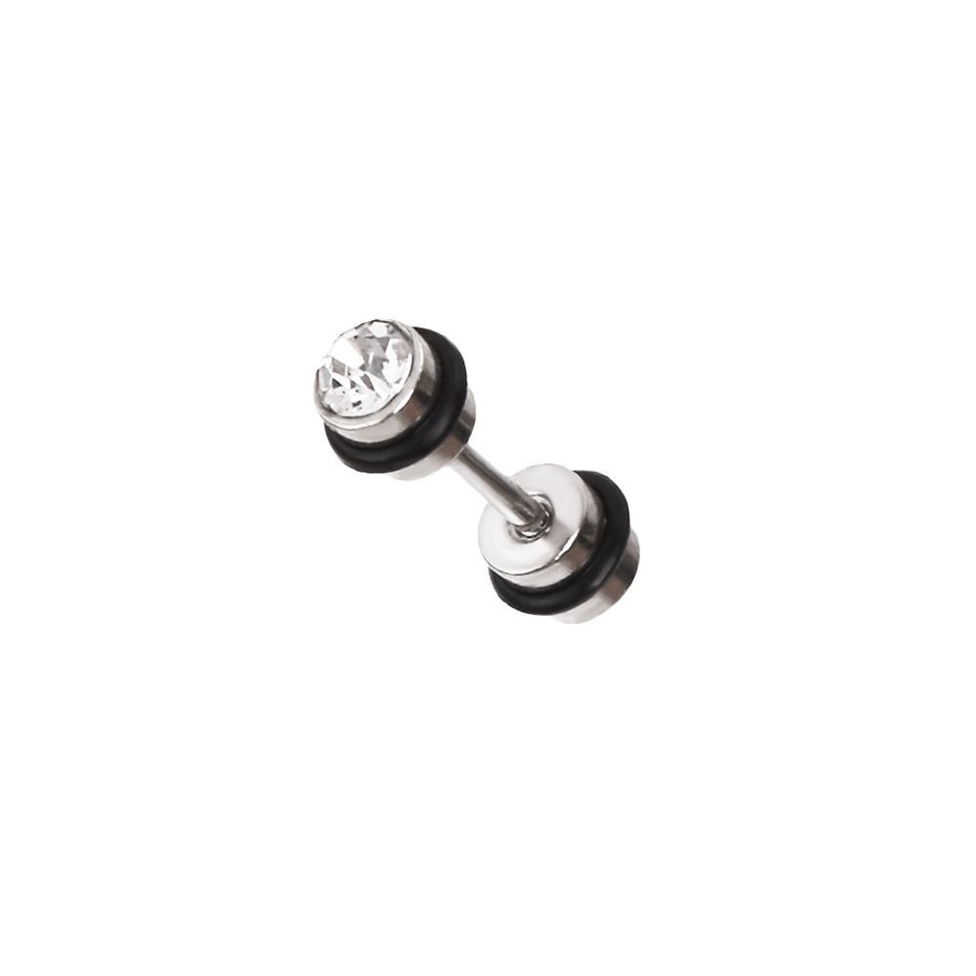 ダンベルデザインにストーンを装飾したストレートバーベルボディピアス。