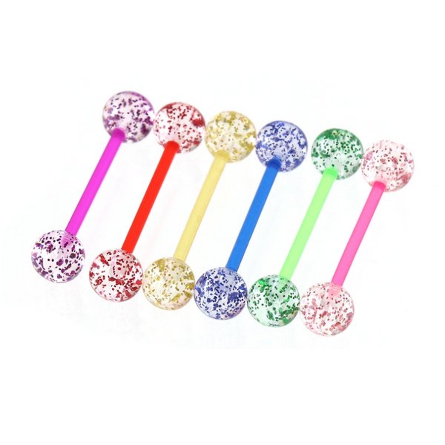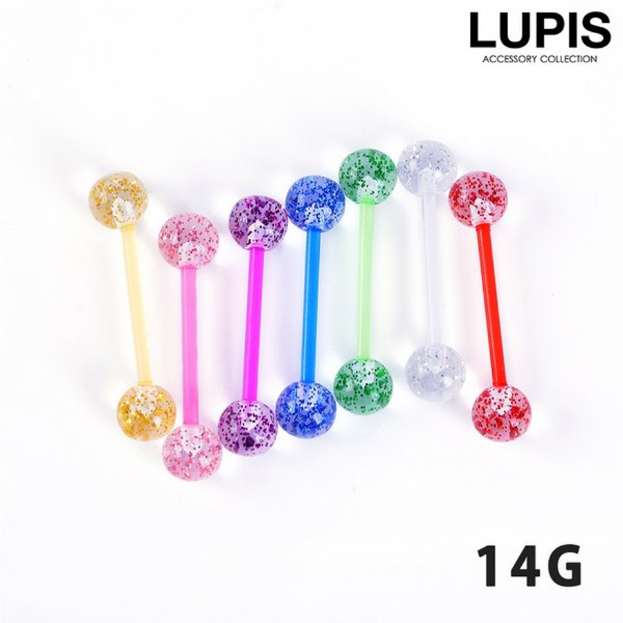 キラキラのグリッターラメがかわいらしいストレートバーベルボディピアス。