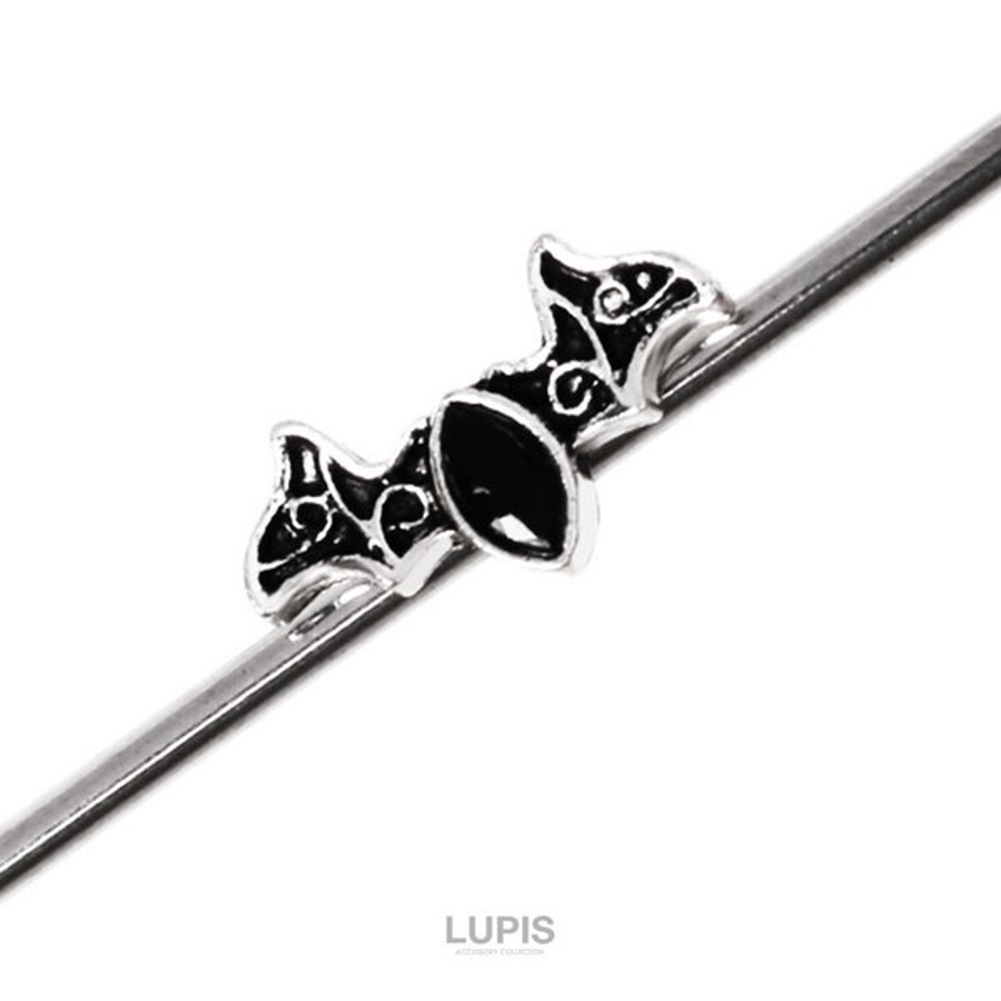 こうもりの真ん中にはさりげなく煌めく黒いジュエルをセット。