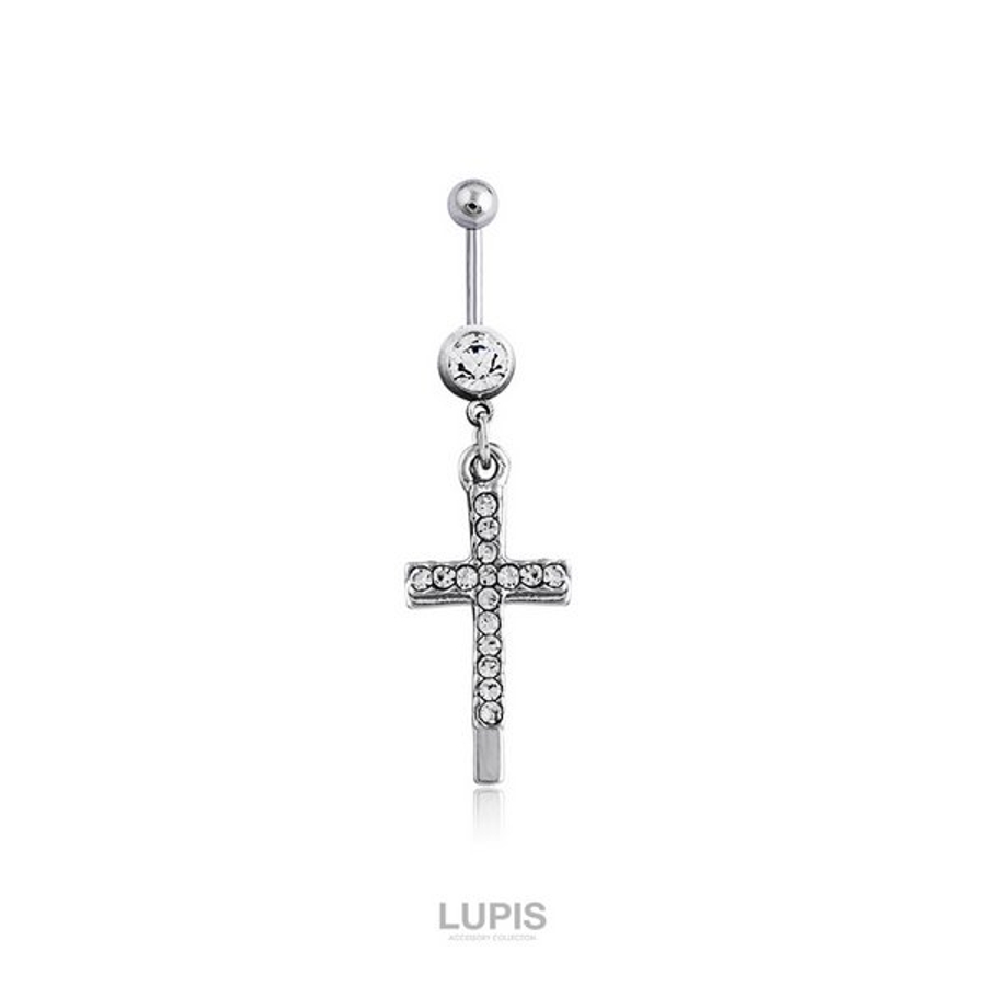 クロス&ジュエルバナナバーベルボディピアス へそピアス