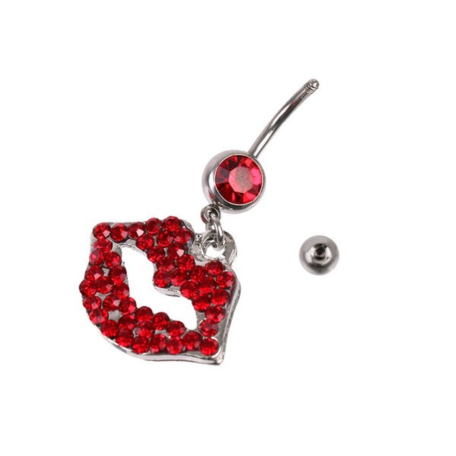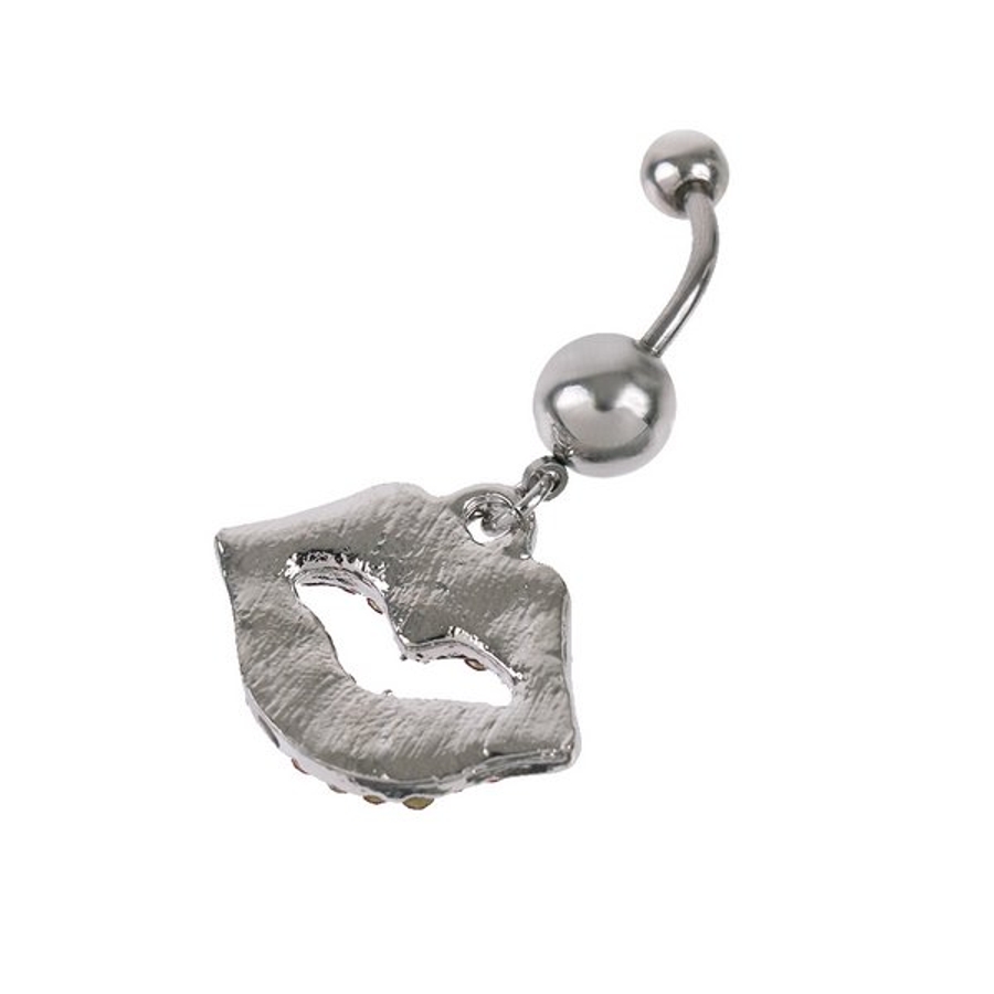 揺れるリップ&ジュエルバナナバーベルボディピアス へそピアス