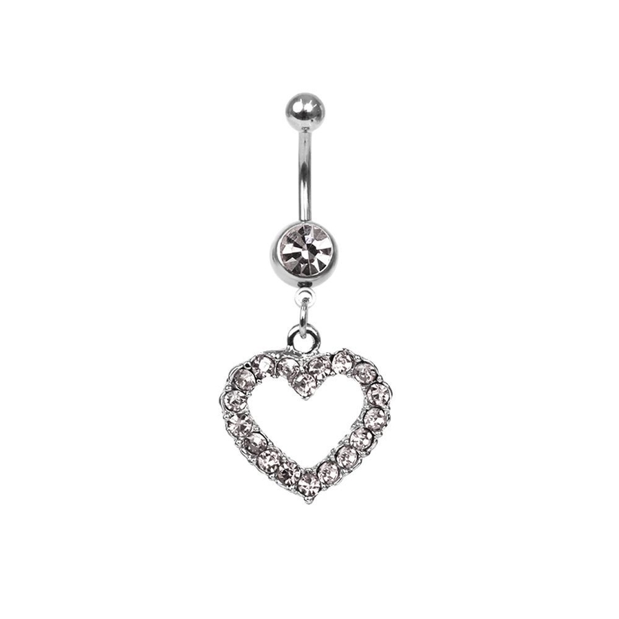 ボディピアスの定番、バナナバーベルにハート&ジュエルの組み合わせ!