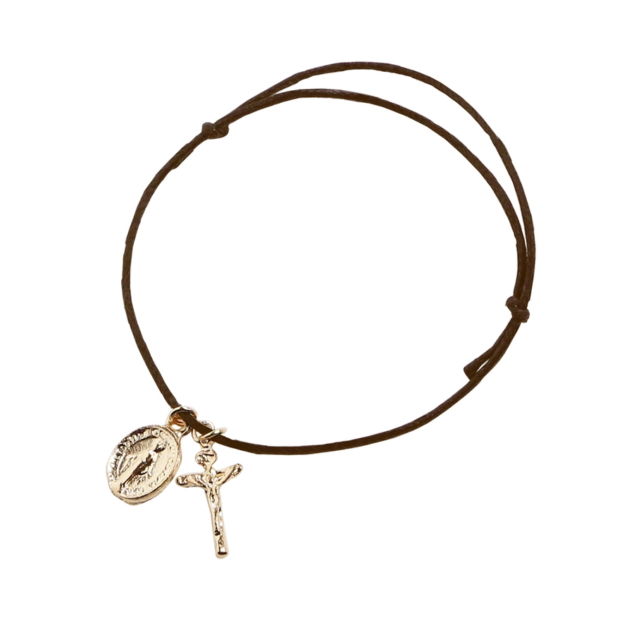 イエスを模したクロスとコインに聖母マリアのデザインがほどこされたブレスレットです♪