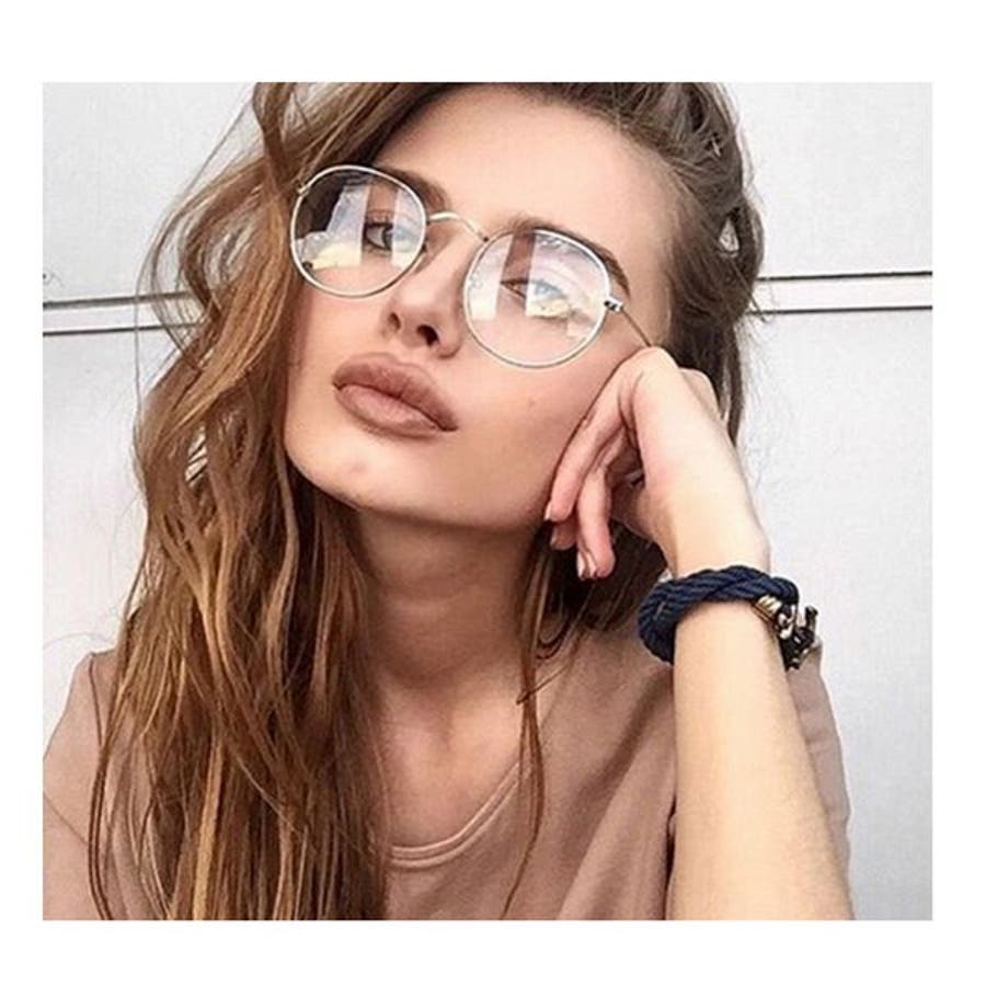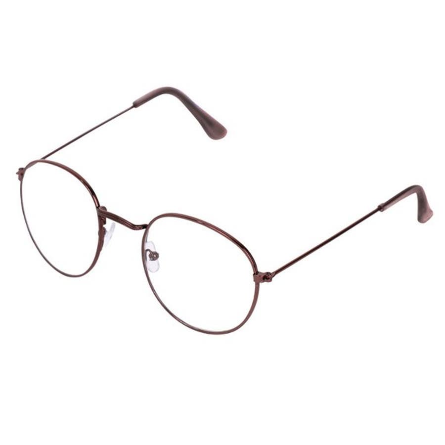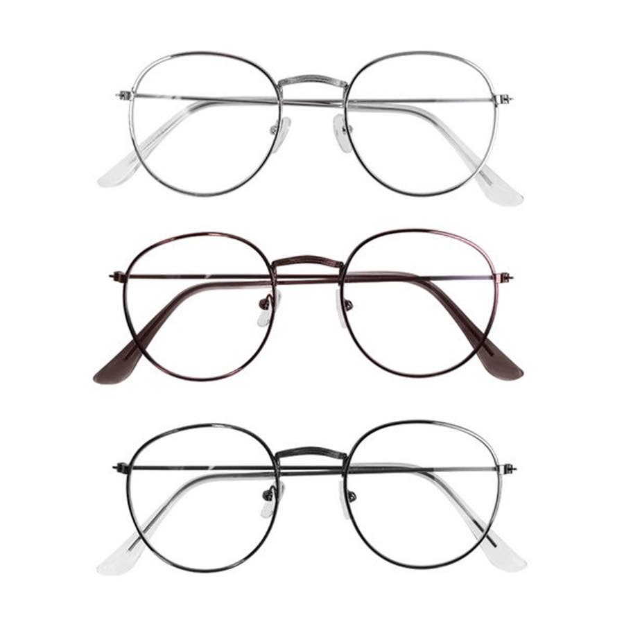 ヴィンテージ感のあるフレームがこなれた印象を放つラウンド型伊達メガネ。