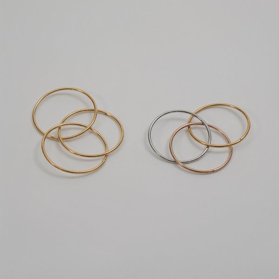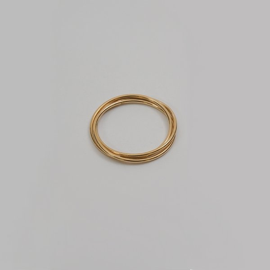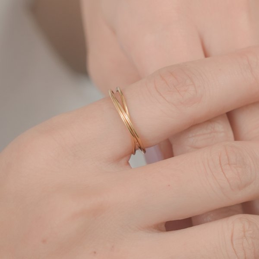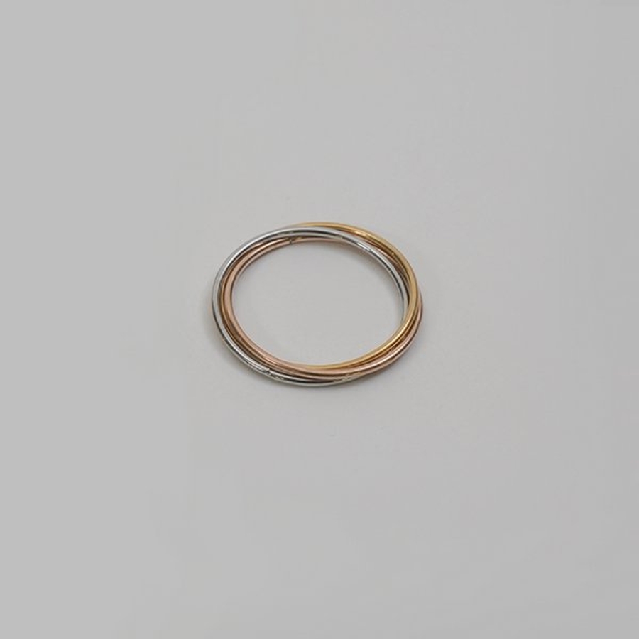 幅わずか1mmのスリムなリングが絡み合う3連リング。