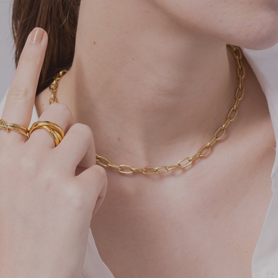 程よくボリューム感のあるメタルネックレス。