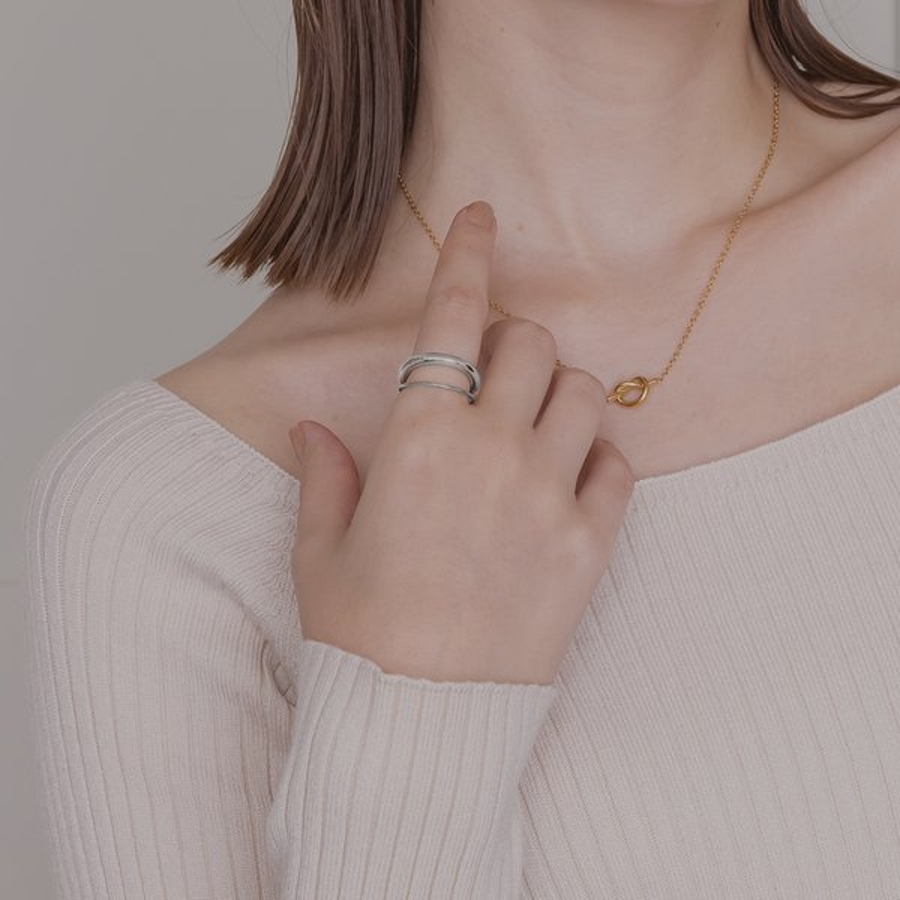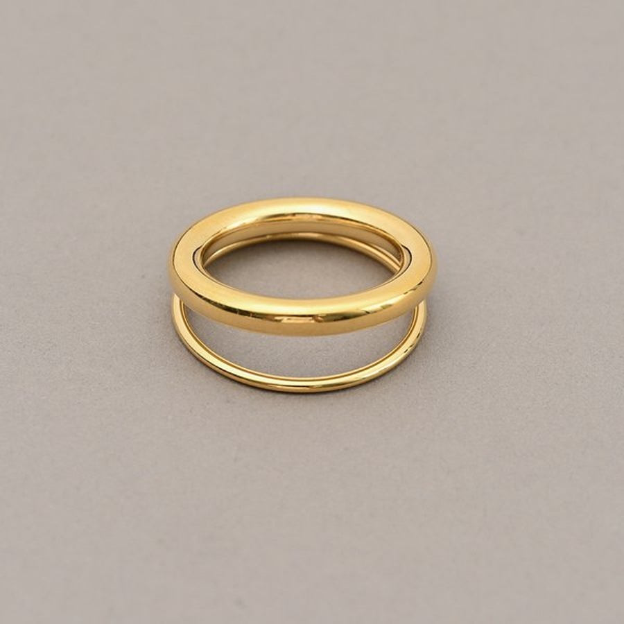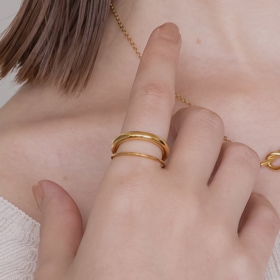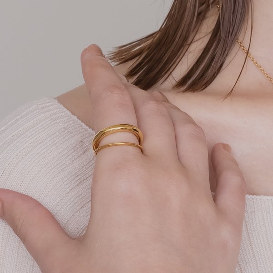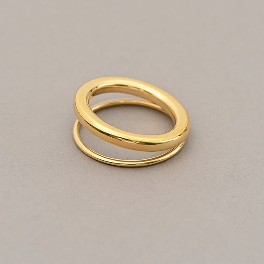 細いラインと太いラインをレイヤードしたシンプルな2連リング。