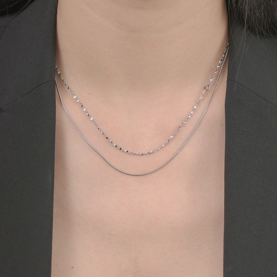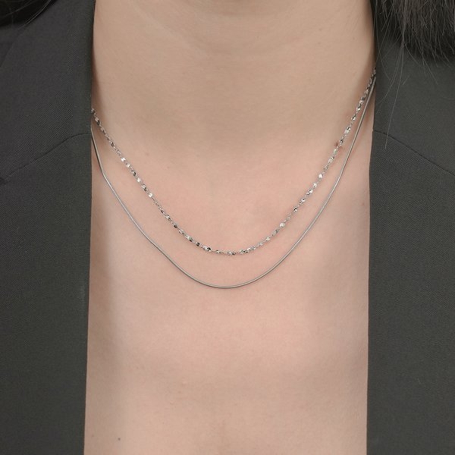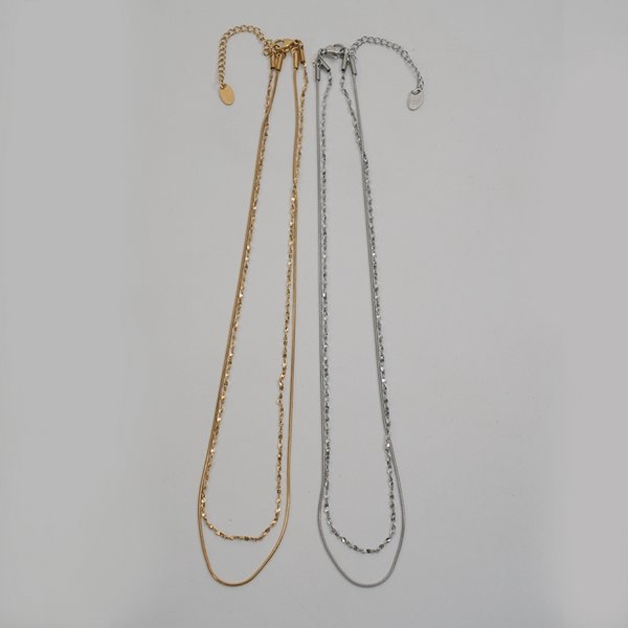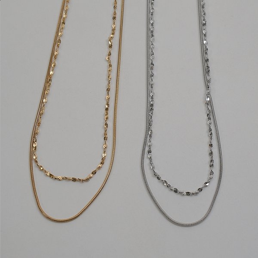 ペタルチェーン×スネークチェーンの華奢な2連ネックレス。