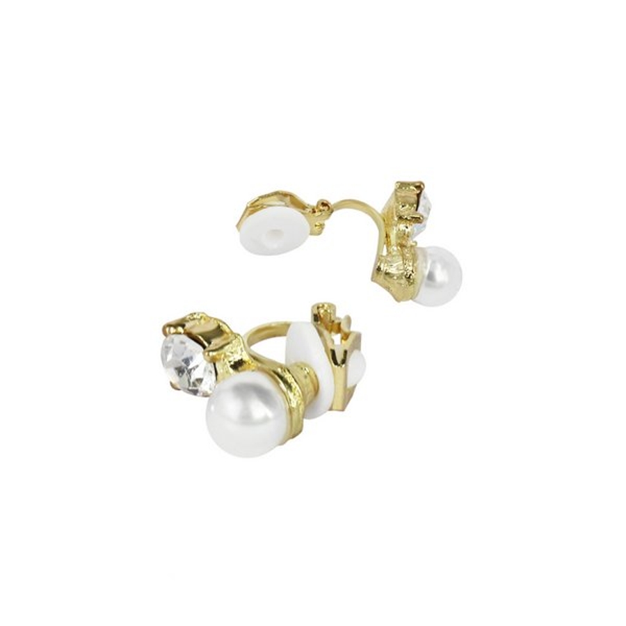 上品に輝くパールとラインストーンがエレガントなクリップ式イヤリング。