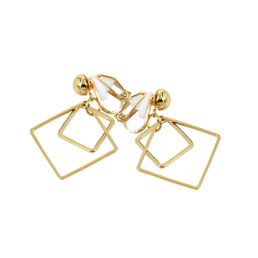 大小2つのスクエアモチーフがシンプルでスタイリッシュな印象のクリップ式イヤリング。