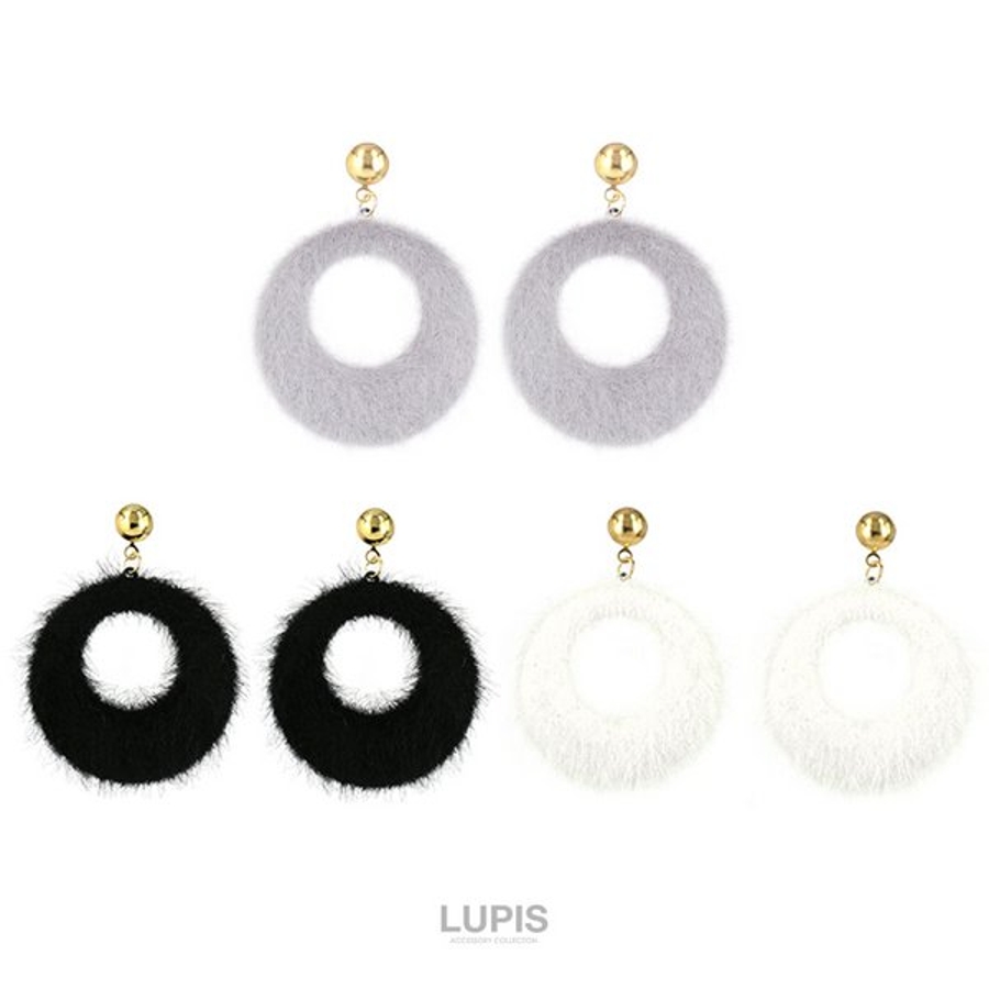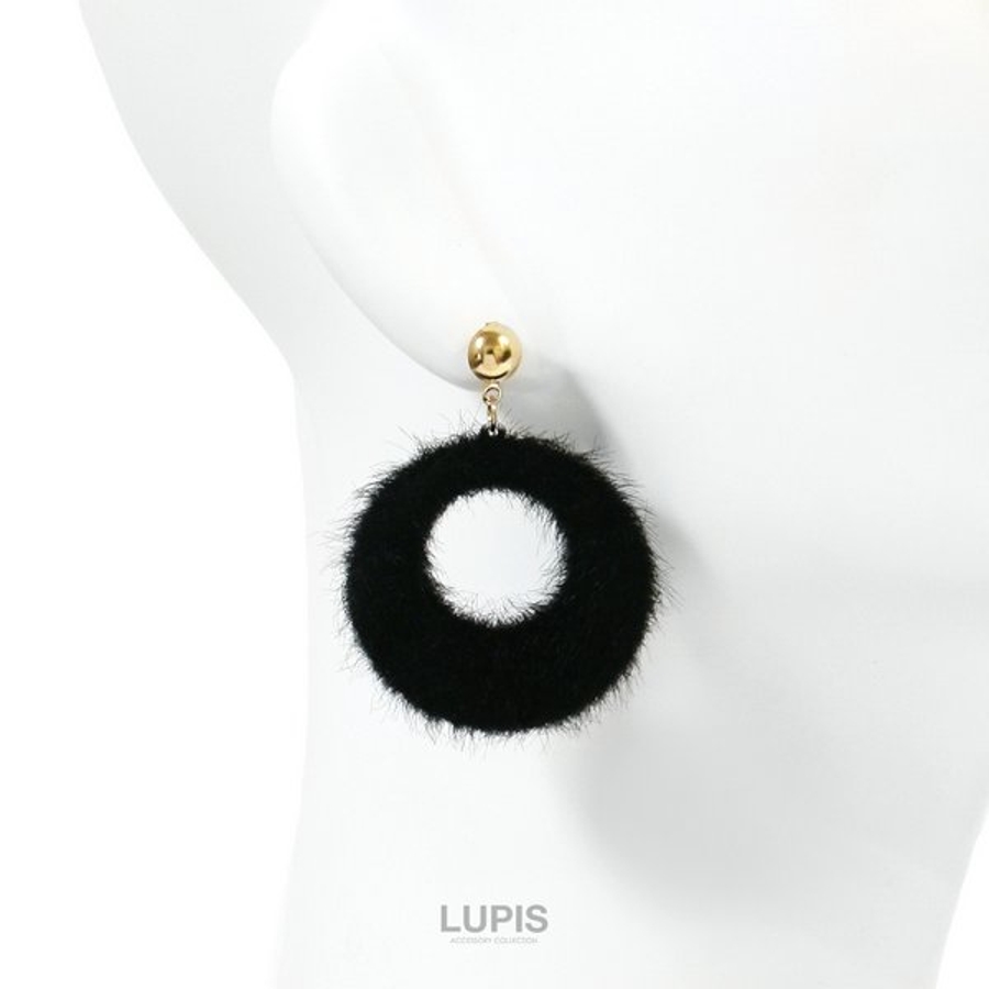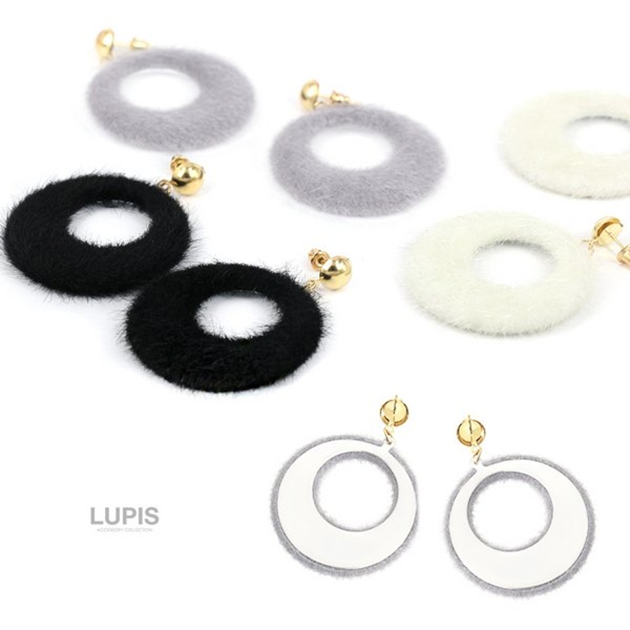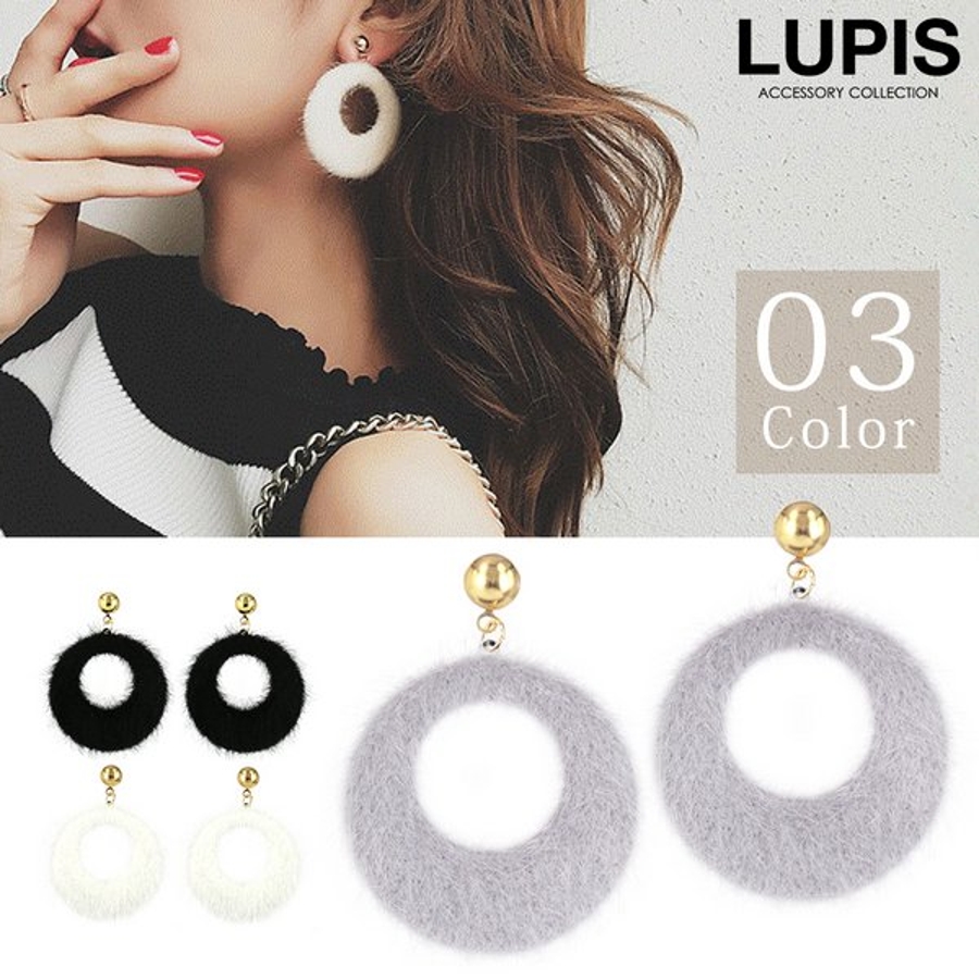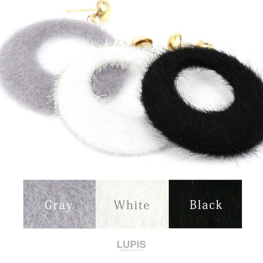 プチプラ 大ぶり 大きめ 揺れる ピアス ファー 大人 ブラック グレー ホワイト 安い 秋 冬 秋冬 ルピス LUPIS