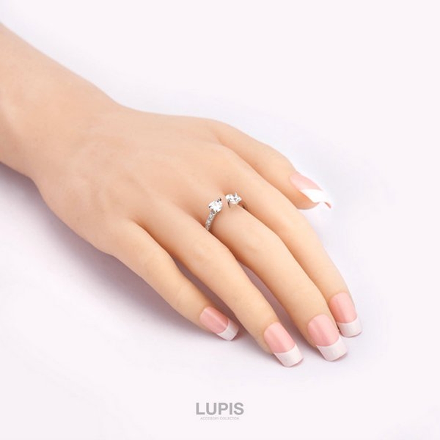 キュービックジルコニアダブルハートリング