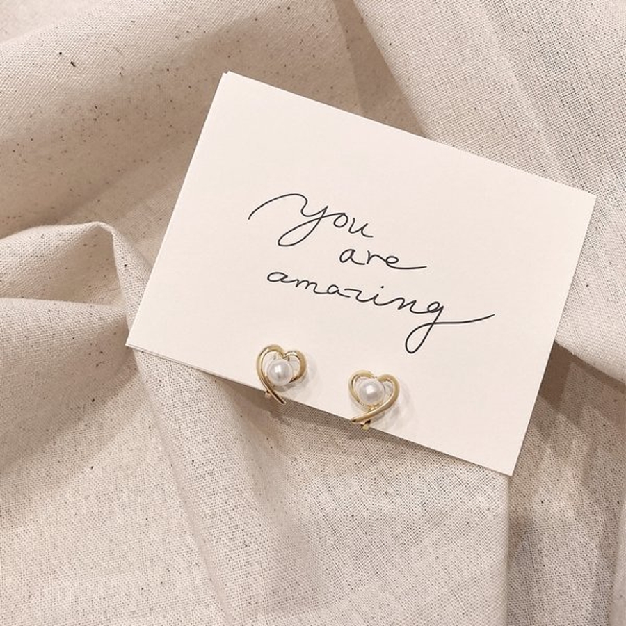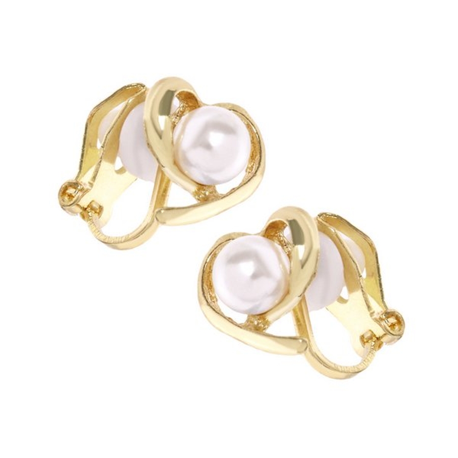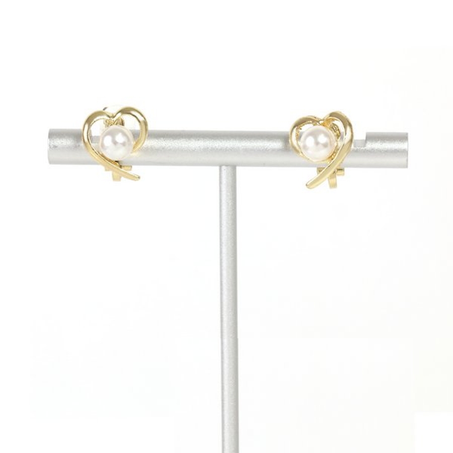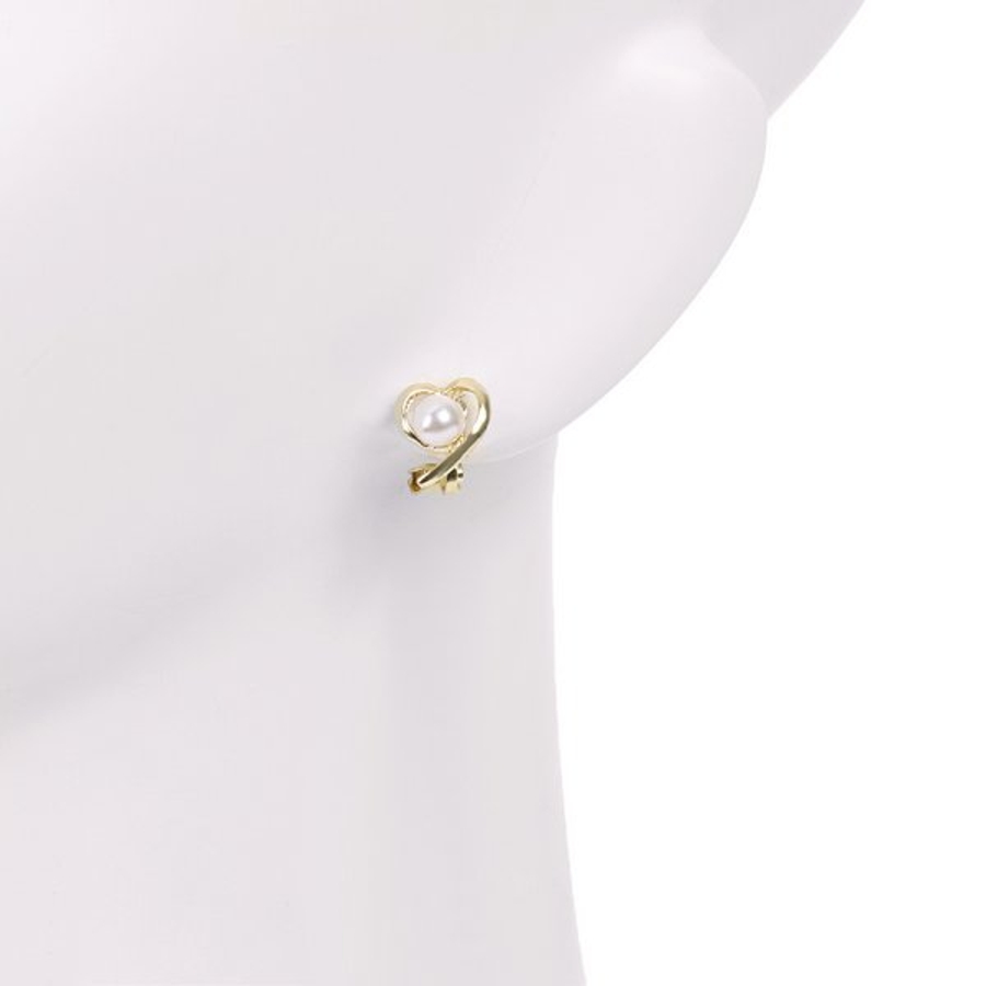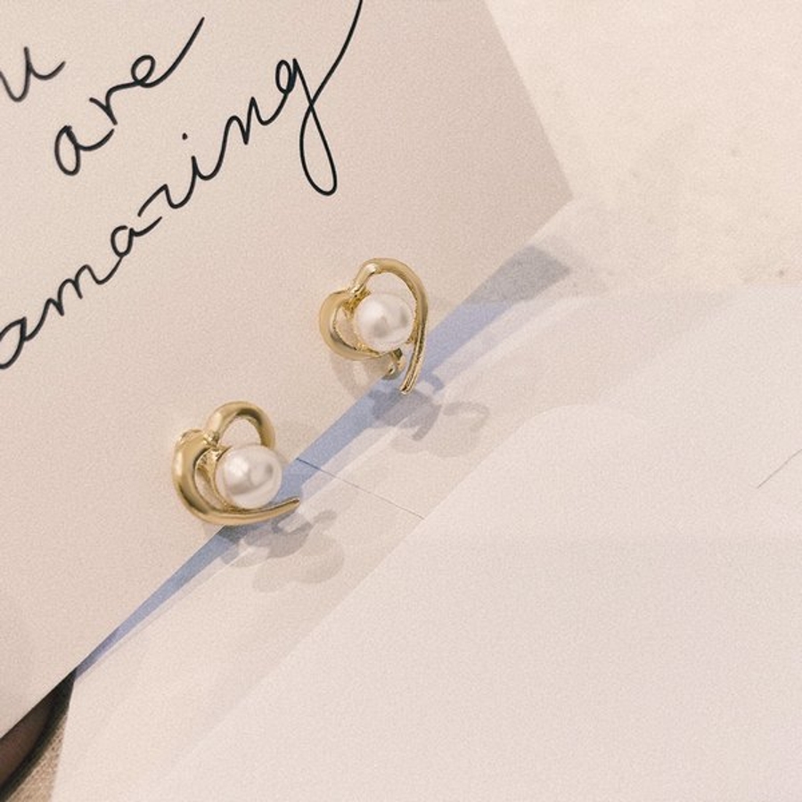 スタイリッシュなオープンラインのハートパールイヤリング。