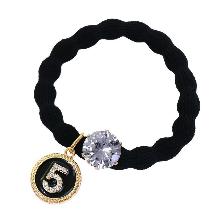 プレートチャームと大きめのラインストーンをあしらったヘアゴム。