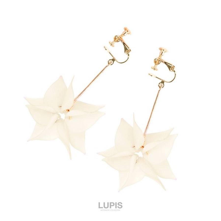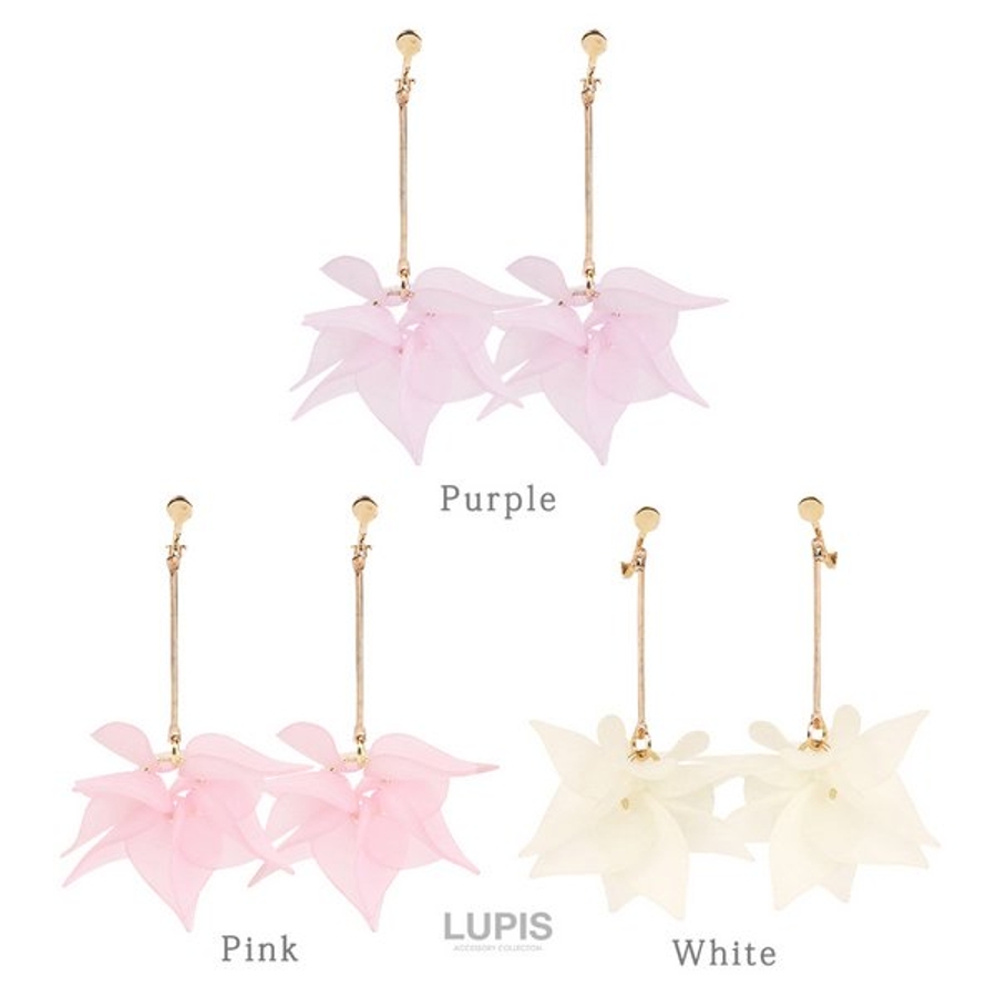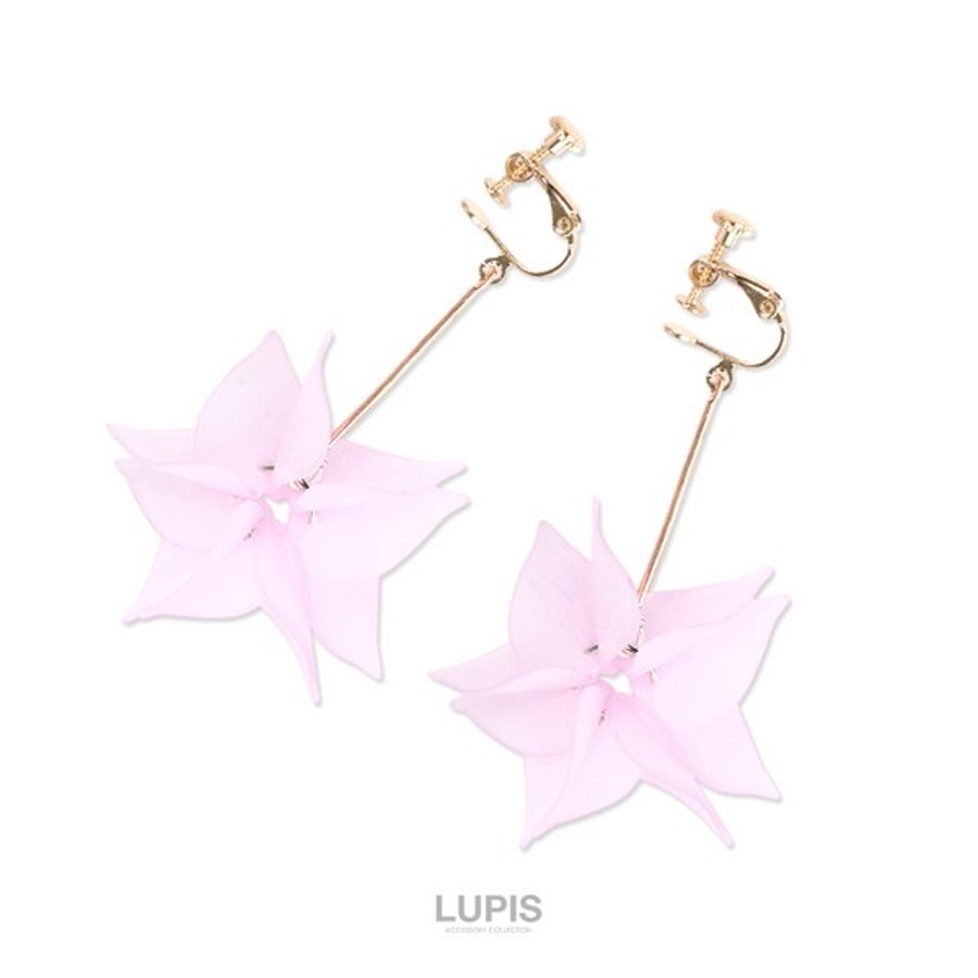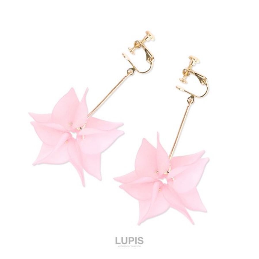 プラスチック素材の花びらをフリンジ状にあしらったピアス。