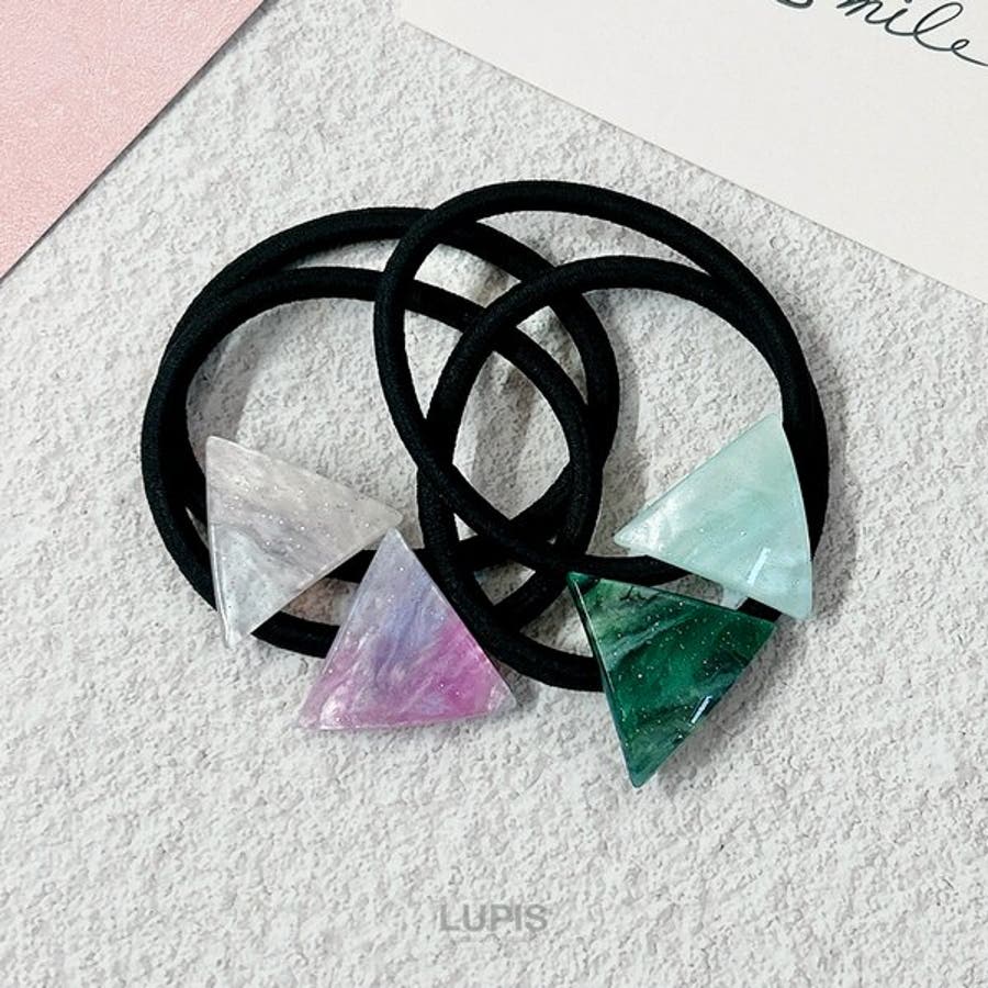 幻想的なマーブル模様にラメが煌めくトライアングルモチーフヘアゴム。