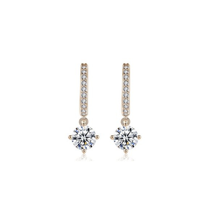キラキラと輝くラインストーンで縁取られたフープに一粒のキュージックジルコニアのチャームを合わせたピアス。