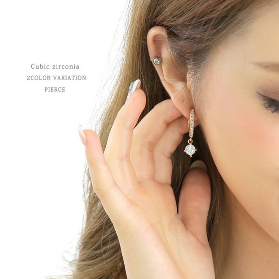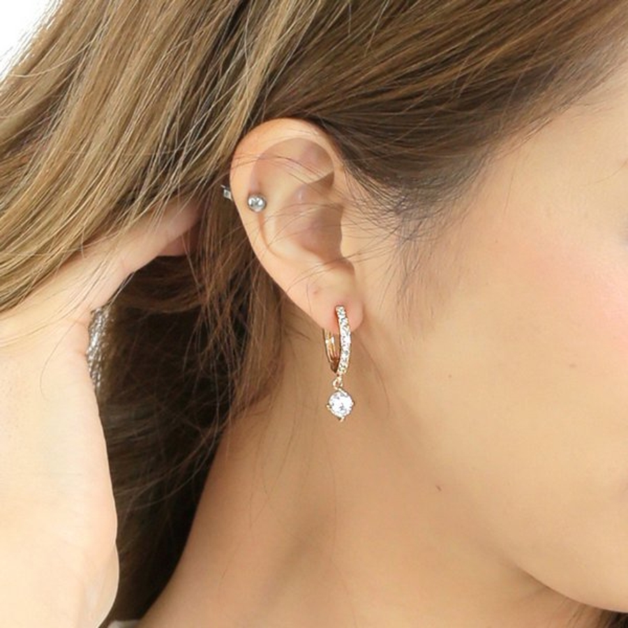 キュービックジルコニアチャームフープピアス