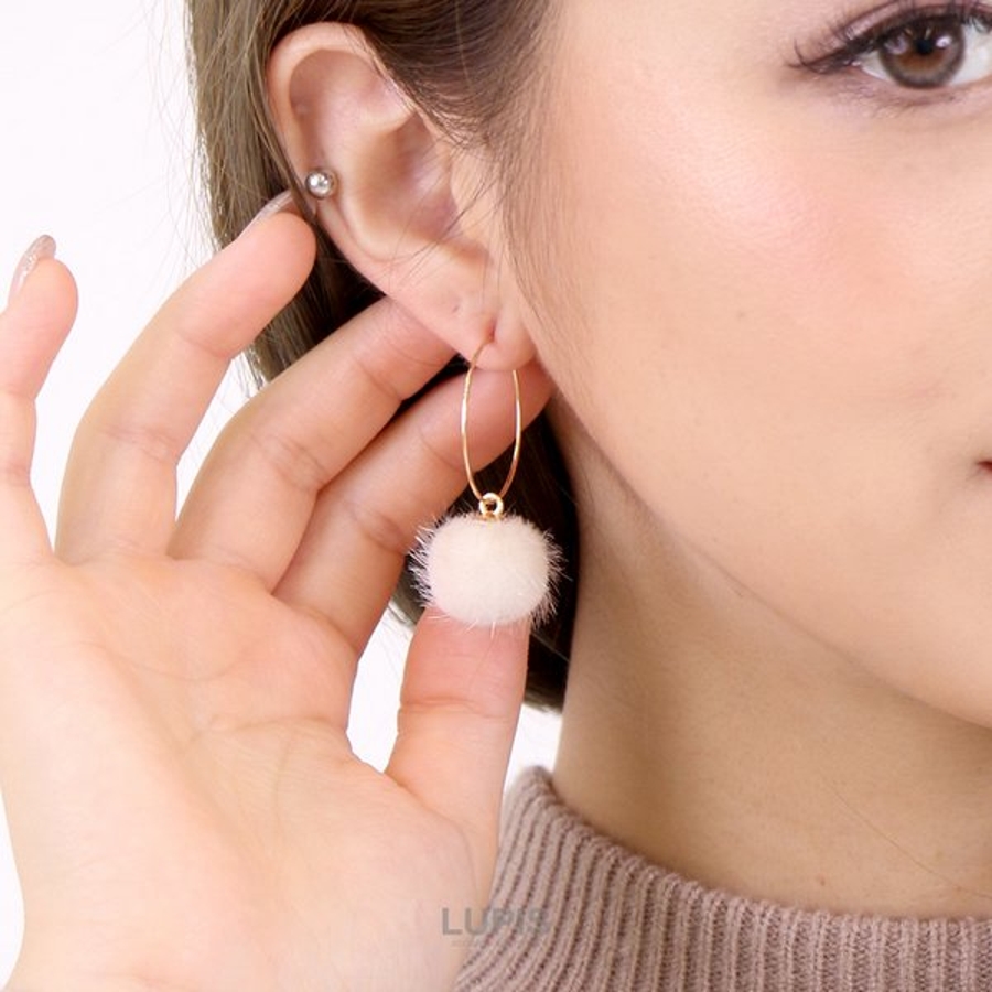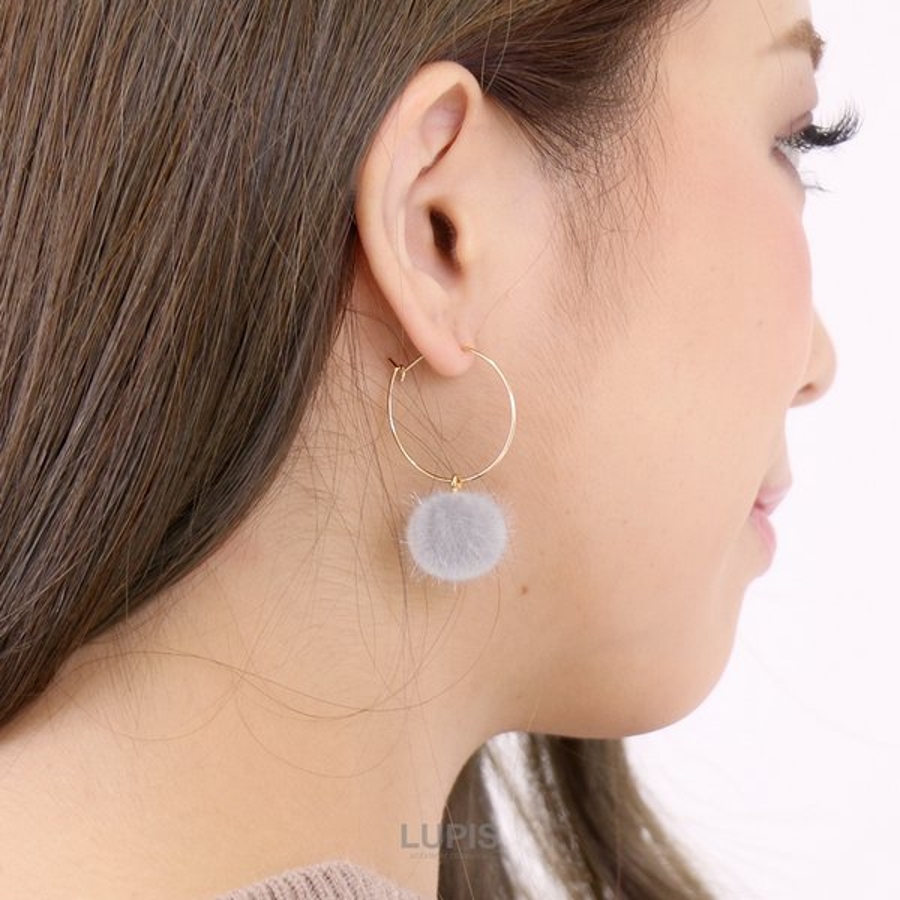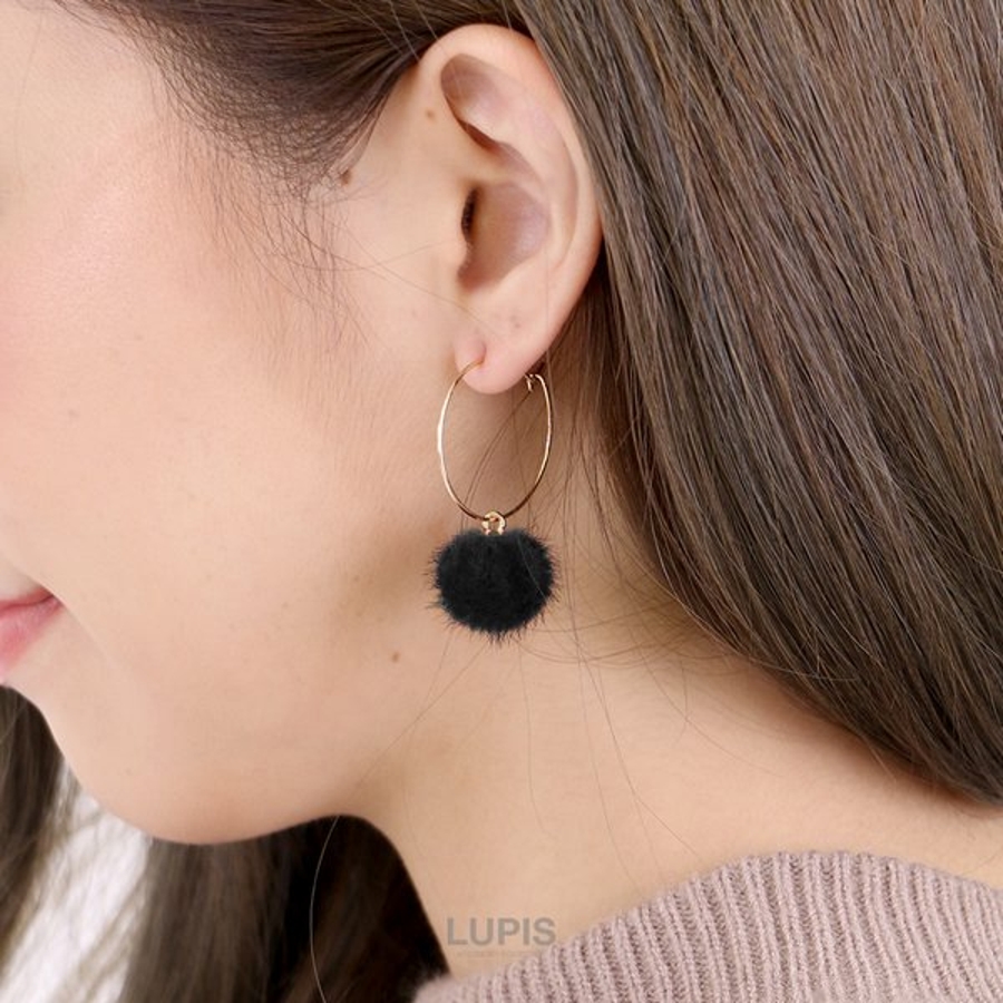 プチプラ フープピアス ファー ボール 大人 かわいい ブラック ボルドー ネイビー アイボリー グレー ピアス 安い 秋 冬 秋冬 ルピス LUPIS
