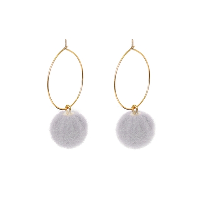 華奢なゴールドフープにファーボールチャームを合わせたピアス。