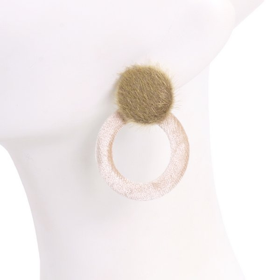 ファー×ベロアサークルピアス【 ファー ベロア