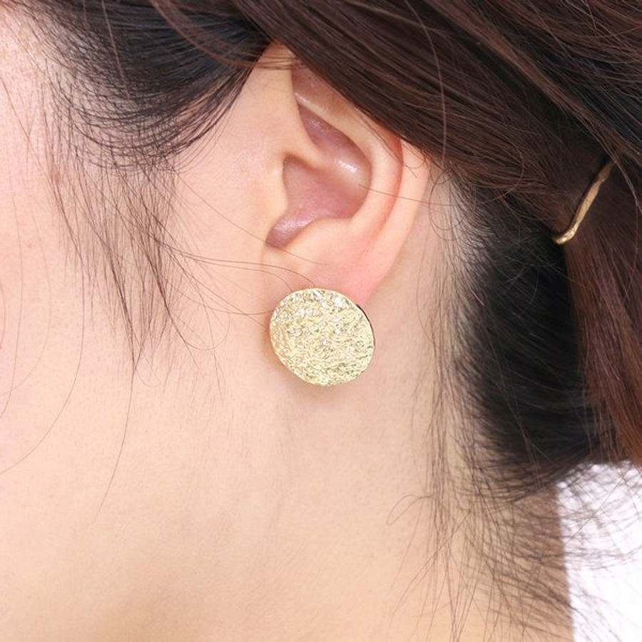 表面加工を施した、シンプルながら存在感を放つサークルメタルイヤリング。