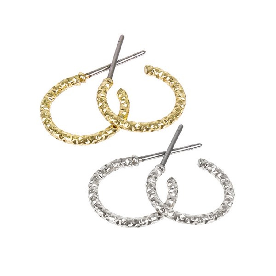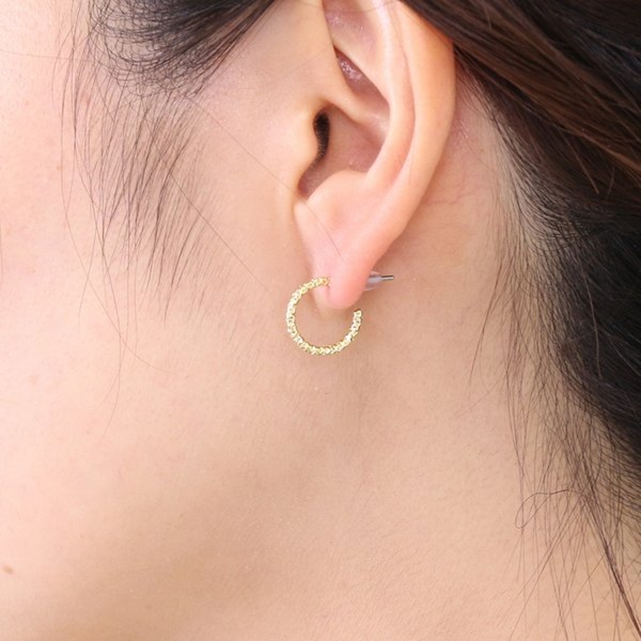 カットデザインの小ぶりでシンプルなフープピアス。