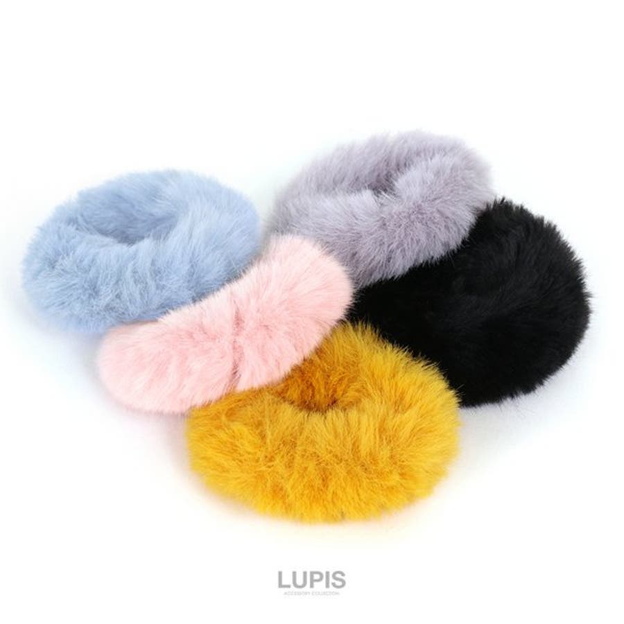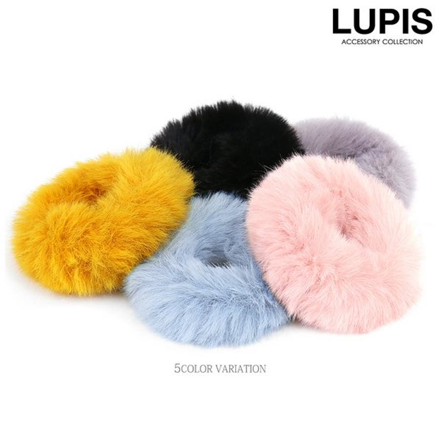 プチプラ シュシュ ヘアゴム ファー かわいい ふわふわ キッズ レディース ヘアアクセサリー ブラック グレー イエロー ブルー ピンク 安い 秋 冬 秋冬 ルピス LUPIS