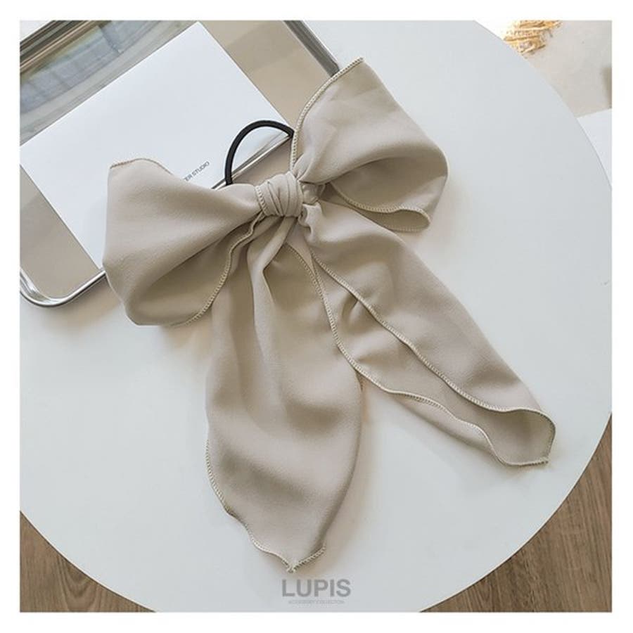 とろみ素材のような張りのある生地感のBIGリボンヘアゴム。